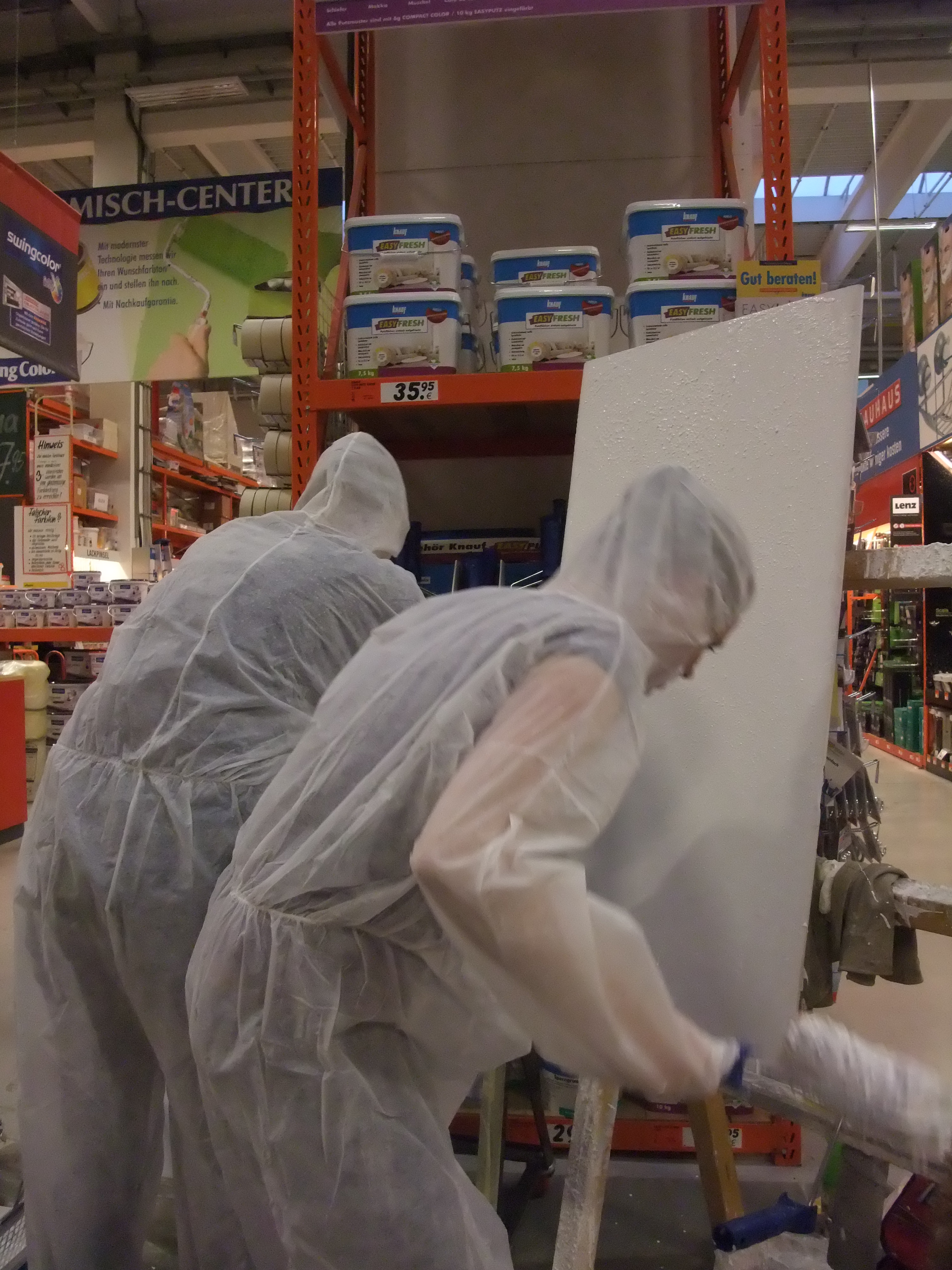 Das macht Frau einmal mit, zweimal, dann geht sie nicht mehr zum Baumarkt. Trying to change the system from within, denken sich die Baumärkte und bieten spezielle Workshops für Frauen an. Die heißen bei OBI „Hammerfrauen“ und bei Bauhaus „Women’s Nights“. Ich melde mich an, Donnerstag Abend geht’s ins Bauhaus nach Untertürkheim. Schwierig zu finden auf der Homepage, ob da überhaupt jemand ist außer mir? 20.30 bis 23 Uhr? Als ich eintreffe, sind schon etwa fünfzig Frauen da, trinken Rotkäppchen-Sekt und knabbern Chips. Mädelsabend im Baumarkt. Ein Mann in weißem Polohemd und Jeans nimmt das Mikrofon, begrüßt, zählt die Workshops auf und wünscht uns viel Spaß. Alle marschieren eifrig los und scheinen genau zu wissen, wo sie hinwollen. Ich bleibe zurück, zwischen Stehtischen, Schinkenbrötchen und Diskjockey. Im Ernst, Diskjockey mit Glitzerkugel. Ein Team vom SWR filmt für die Landesschau. Ich trolle mich zu den Workshops und verbringe die nächsten zwei Stunden mit Fliesenlegen und Löcher in Beton bohren, Wände verputzen, Eichenparkett verlegen und Popodusche. Das ist eine Schiene, die man ins Klo einbauen kann, um den Popo zu duschen. Die Stimmung ist gut. Es fallen Bemerkungen wie „Ich will meinem Mann beweisen, dass ich das auch kann“, oder „Wir haben ein altes Haus gekauft und müssen alles renovieren.“ Ziemlich viele Frauen hier scheinen im Besitz eines alten Hauses zu sein. Beim Bohren wollen sie alles ganz genau wissen und erklären dann dem Mann, das Frauen eben immer alles ganz genau wissen wollen, während Männer sich nicht trauen, Fragen zu stellen, damit man sie nicht für zu blöd zum Heimwerken hält. Die Männer (und die eine Frau), die die Workshops leiten, machen keine blöden, sexistischen Sprüche. Sie sind erstaunlich einfühlsam. Wahrscheinlich hat man das ihnen so beigebracht. Frauenvergraulen im Baumarkt war gestern. Aber eigentlich geht es hier gar nicht um den Baumarkt. Eigentlich geht es hier um die Unterschiede zwischen Mann und Frau, bei Rotkäppchen-Sekt und Ferrero-Küsschen. Bestimmt wird das hier von irgendeiner Gleichstellungsstelle finanziert. Zum Abschied gibt’s eine Geschenktüte mit Metermaß, Schlüsselbändern und Dosenöffner.
