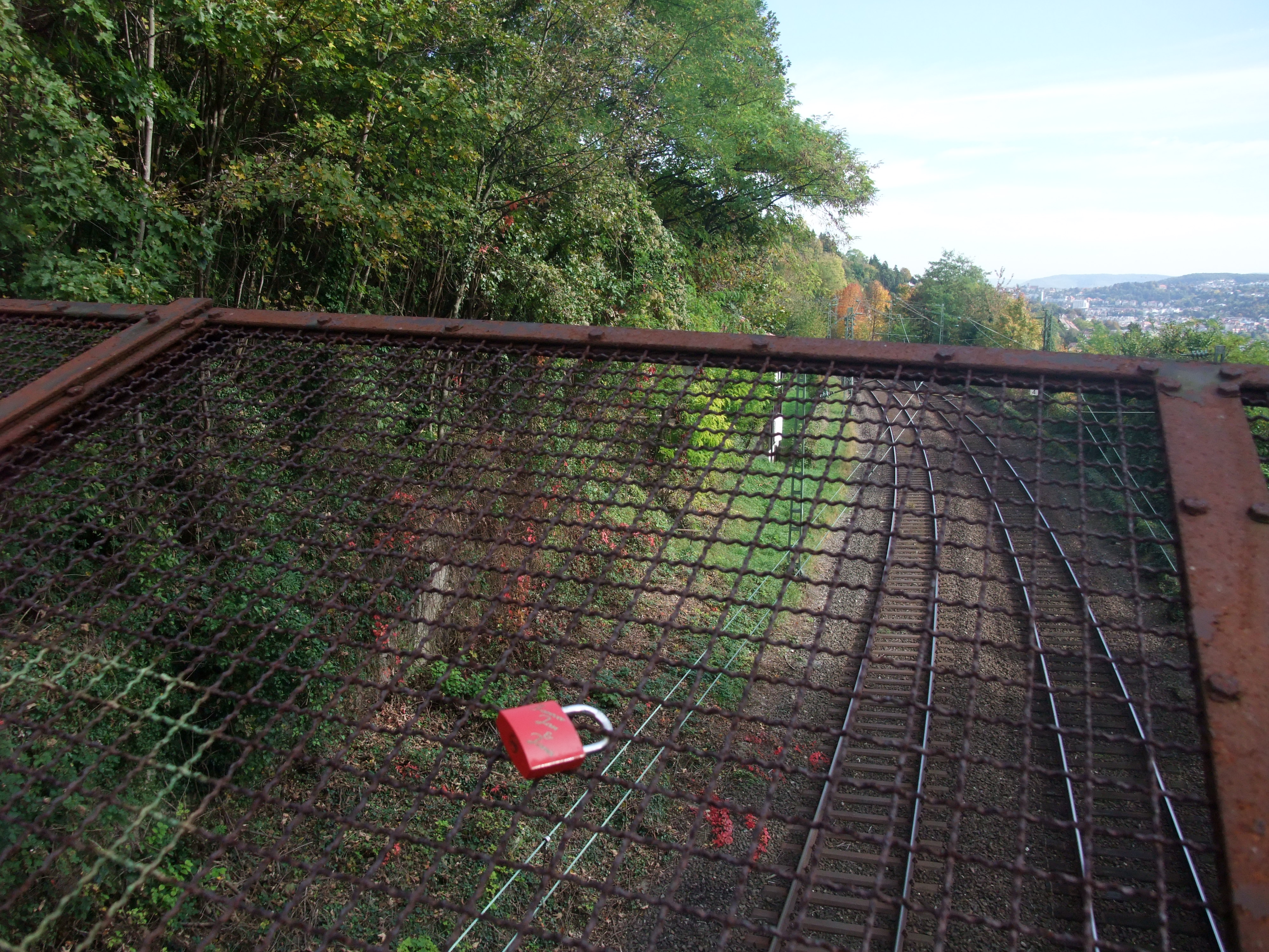 Haben Sie’s erkannt? Natürlich nur die Ortsansässigen. Es ist die namenlose Brücke über die Gäubahn! Unter ihr rauschen Züge gen Singen am Hohentwiel, oder auch mal die S-Bahn, wenn’s am Hauptbahnhof klemmt. Die Schlösser hängen am verrosteten Gitter in der Nähe des alten Bahnwärterhäuschens, wo ein berühmter Schriftsteller wohnt, dessen Namen wir hier aus Diskretion nicht preisgeben wollen. Kann es einen romantischeren Ort geben? Zudem klug gewählt, denn im Moment verschwindet ja so manche Brücke in Stuttgart in Windeseile. Und damit wäre ja auch das Schloss weg, und die Liebe hinüber.