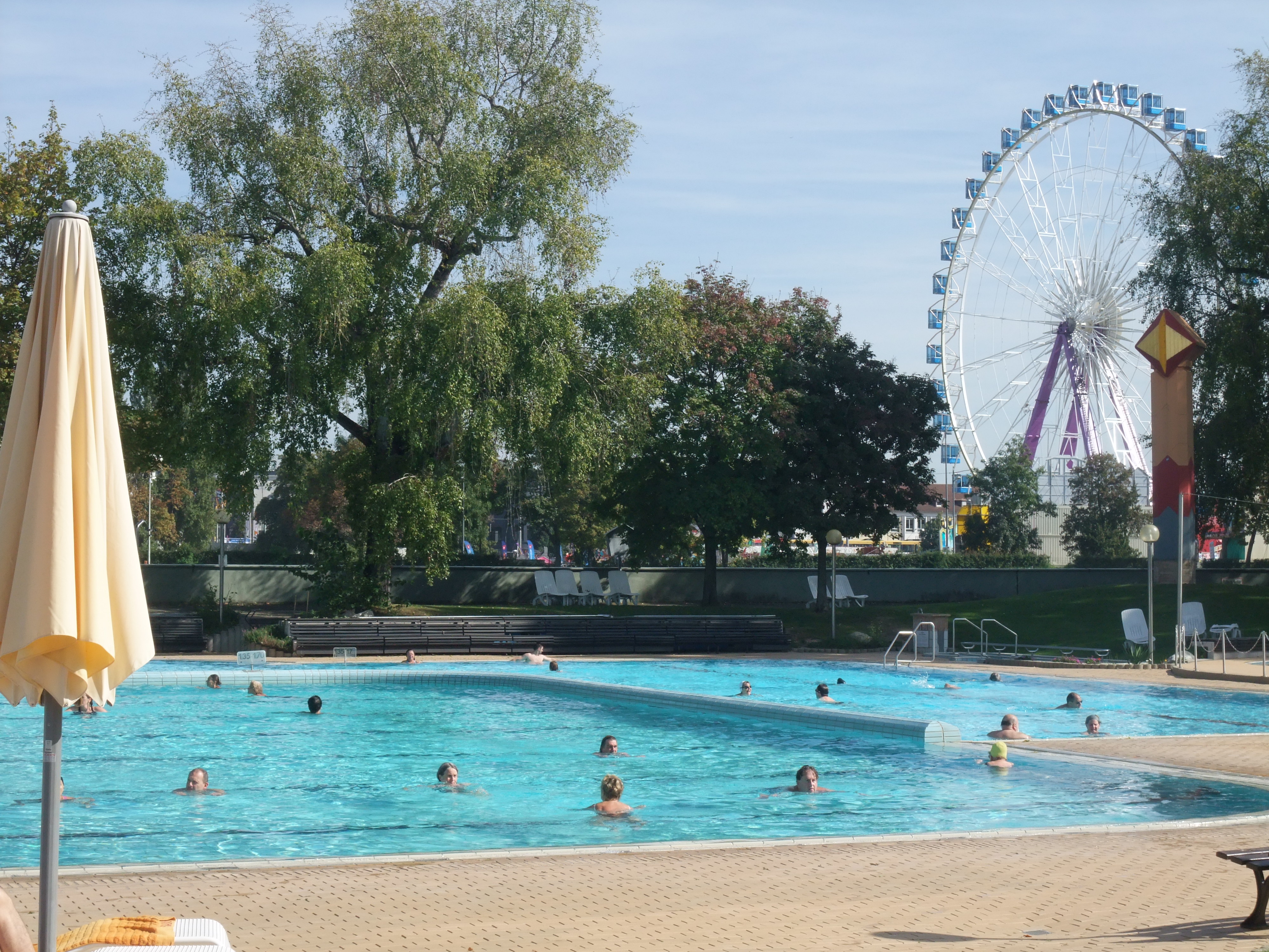 PS Das Foto (während des Volksfests aufgenommen) ist übrigens illegal. Man darf nämlich im Leuze keine Personen ablichten. Der Bademeister hat mit mir geschimpft.