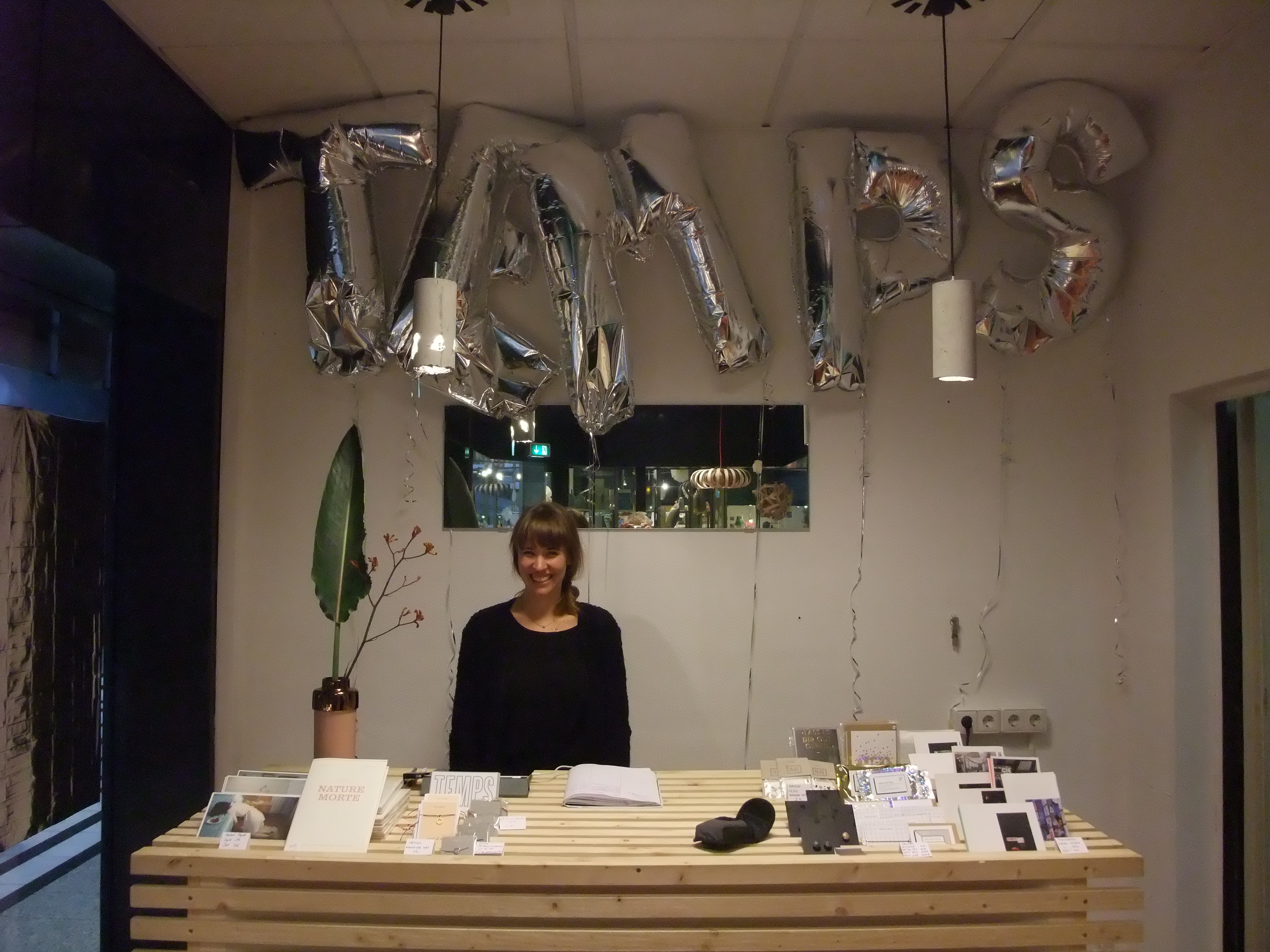 Bei Temps, dem temporären Kaufhaus, gibt es Mode, Taschen und Schmuck von kleinen Labels und eine improvisierte Umkleidekabine. Temps war schon zur Zwischenmiete am Marienplatz, dort sehr erfolgreich, und möchte im Gegensatz zu den anderen Mietern gar nicht dauerhaft im Fluxus sein, weil es zum Konzept gehört, den Standort zu wechseln.