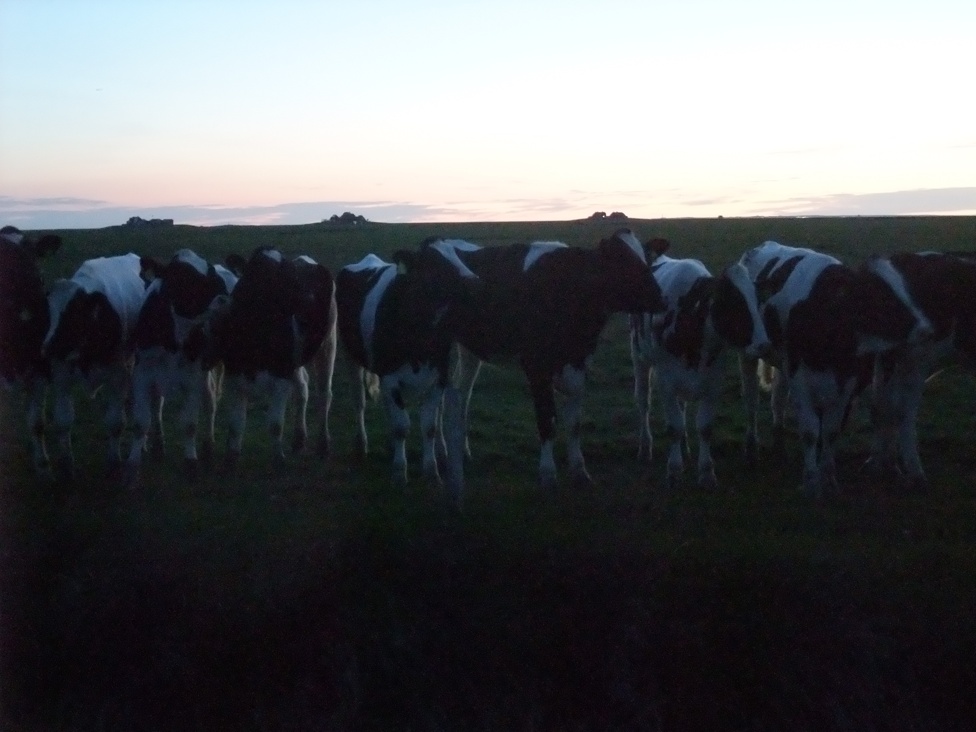 Schließlich waren Thorsten, Willi, Helen und Dirk, der diese Woche eine neue Stelle im Gemeindebüro angetreten hat, mit dabei. Oder besser gesagt, ich war bei ihnen dabei. Ich habe nämlich weder von Angeln noch von Aalen irgendeinen blassen Schimmer. Die Aale waren auch nicht so schrecklich wichtig (tut mir leid, Leute). Ab und zu biss zwar einer an, und dann gab es eine kurze Aufregung, und dann zuckte ein schwarzglänzender Leib an einer Angel und verschwand ganz schnell in einem Eimer, und der Deckel kam drauf. Viel wichtiger war, dass es eine überirdisch schöne Nacht war. Fast windstill, ein nicht enden wollender Sonnenuntergang, und selbst um halb zwölf war es noch nicht richtig dunkel. Eine Gruppe Jungvieh stand am Zaun und glotzte, sichtlich begeistert, dass mal was passierte.