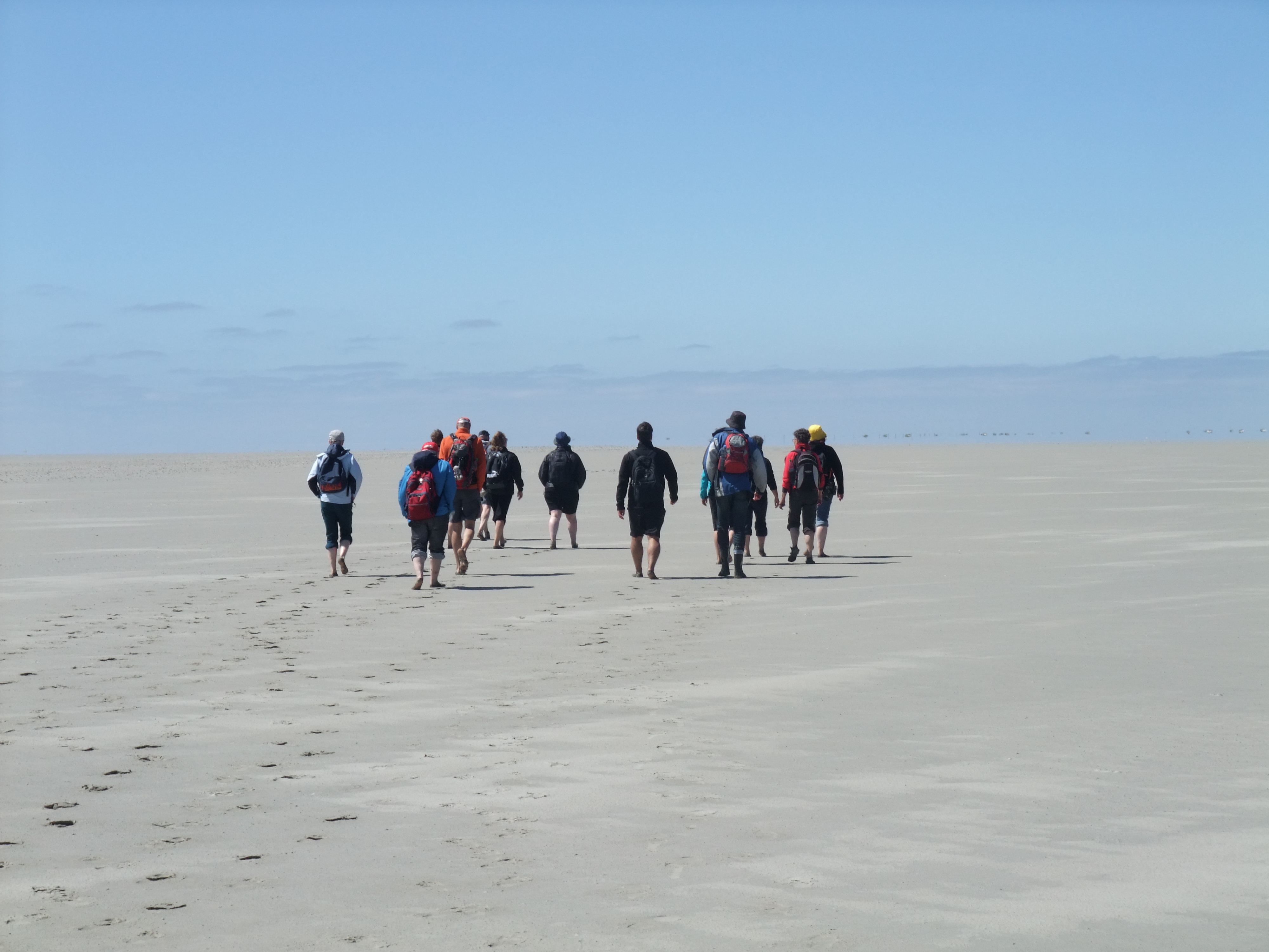 Über den Meeresboden zu laufen, der Stunden später wieder vom Wasser überspült wird, durch Priele zu waten, durch Schlick zu patschen und über piksige Muscheln zu balancieren, das ist ein unglaublich faszinierendes Erlebnis. Je näher man dem Japsand kommt, desto mehr fühlt man sich in einer Wüste, und nicht mitten auf dem Meer. Fast spiegelglatt ist der Sandboden, hart, ohne Muscheln und Algen, und endlos weit. Eine Landschaft, unwirklich und bizarr, und man kommt sich fast vor wie ein Eindringling in der Natur.