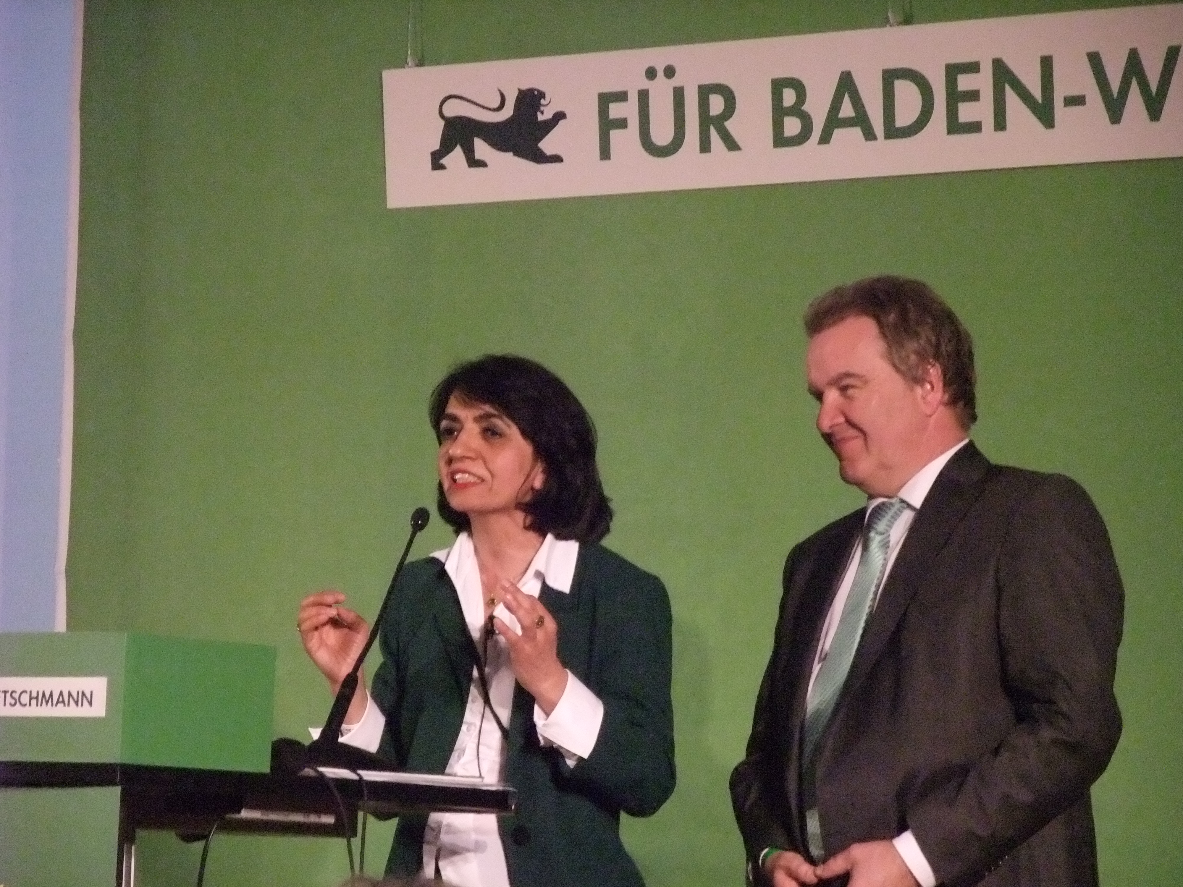 Stimmenkönigin Muhterem Aras und Umweltminister Franz Untersteller – die Grünen holen alle vier Direktmandate in Stuttgart