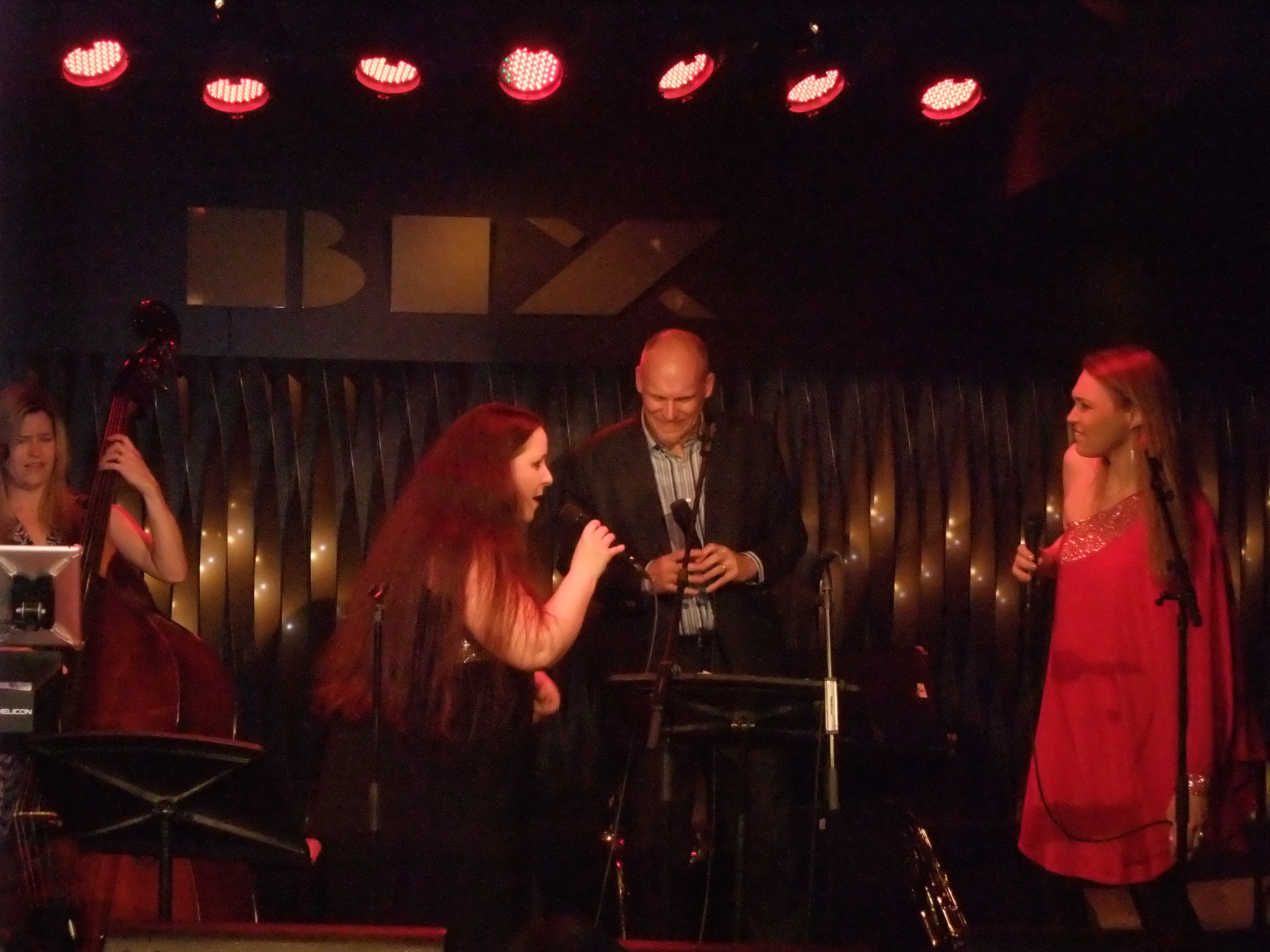 Und das Konzert selbst? Fulminant. Eine echte Entdeckung ist die Amerikanerin Kristin Korb, die „wegen eines Wikingers“ nach Dänemark gezogen ist. Die spielt Kontrabass und improvisiert gleichzeitig. O my God! Herzstück des Abends sind aber eindeutig Anne Czichowsky, Sabine Kühlich und Darmon Meader. Die singen und scatten mal solo, mal zu zweit, mal zu dritt, und sie beweisen die unglaubliche Magie des Jazz: Musik, die aus dem Augenblick entsteht, die keine tagelangen Proben braucht, die nicht wiederholbar ist, die pure Lust an der Musik und intensivste Kommunikation miteinander ist. Dem zuzuschauen und zuzuhören ist die reine Freude. Mein persönliches Highlight: „I wish you love“, das Anne auf Englisch singt und Sabine (gleichzeitig!) auf Französisch, dann kommen noch zwei Saxophone ins Spiel… Zum Dahinschmelzen! Wenn Sie auch nur halbwegs in der Nähe eines der Konzerte sind: Nix wie hin!