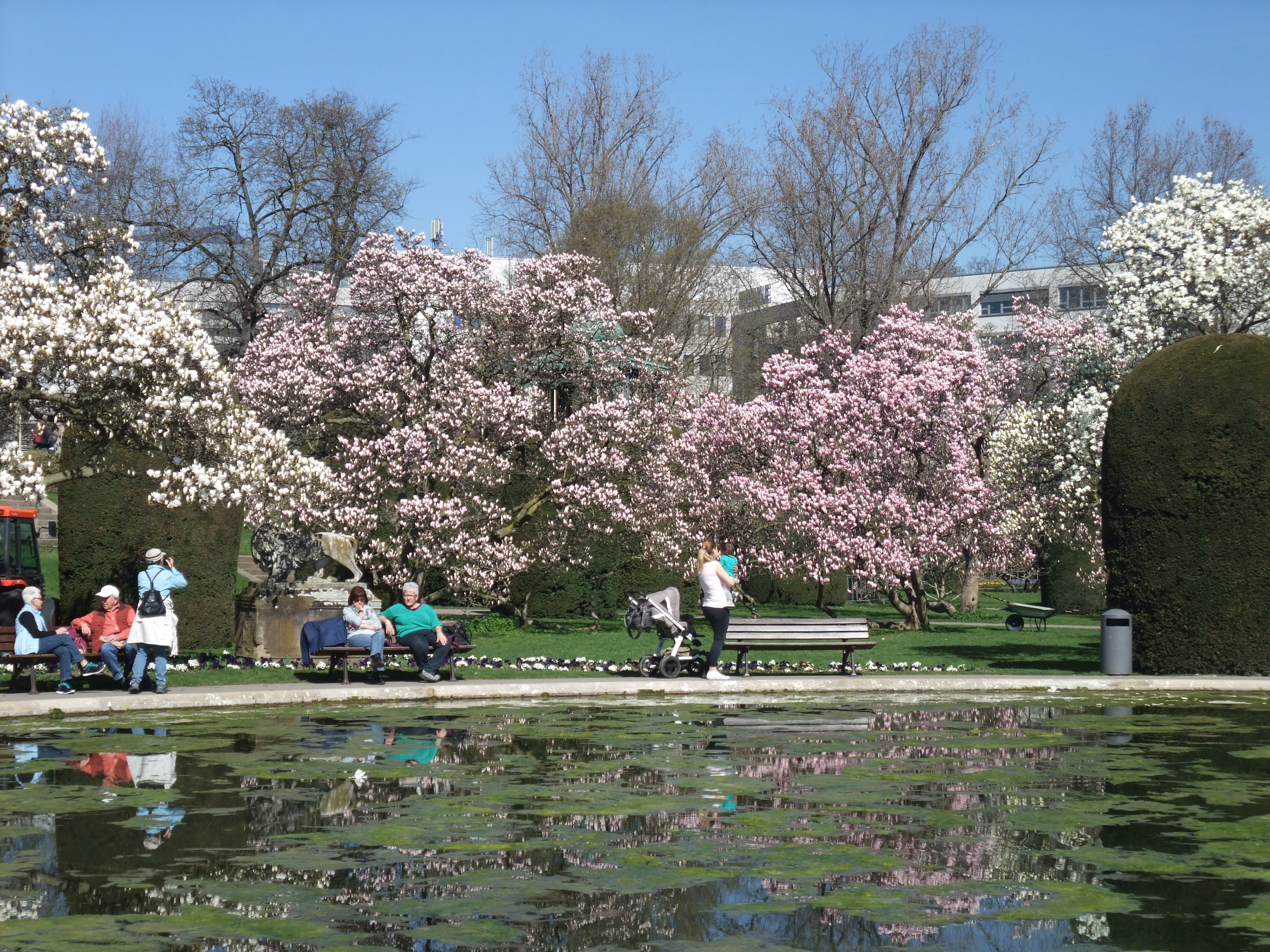 Und so sieht man Fotografen mit schwerem Equipment auf der Jagd nach dem schönsten Baum und der schönsten Blüte, Familien mit Picknick und viele Menschen mit einem entzückten Lächeln, die von Baum zu Baum wandern und auf den Bänken um die Seerosenteiche herum das schöne Frühlingswetter genießen. Nicht einmal der Baustellenlärm, der die Umgebung der Wilhelma im Augenblick schier unerträglich macht, scheint in dieses Paradies zu dringen. Die Blüten gehen gerade erst richtig auf, aber bei dem warmen Wetter werden sie bald in voller Pracht sein. Deshalb: Nix wie hin! Idealerweise nicht am Wochenende. Tipp: Ab 16 Uhr gilt der Abendtarif, dann kostet der Eintritt für Erwachsene 11 statt 16 Euro, und ab April kann man bis 19.30 Uhr in der Wilhelma bleiben.
