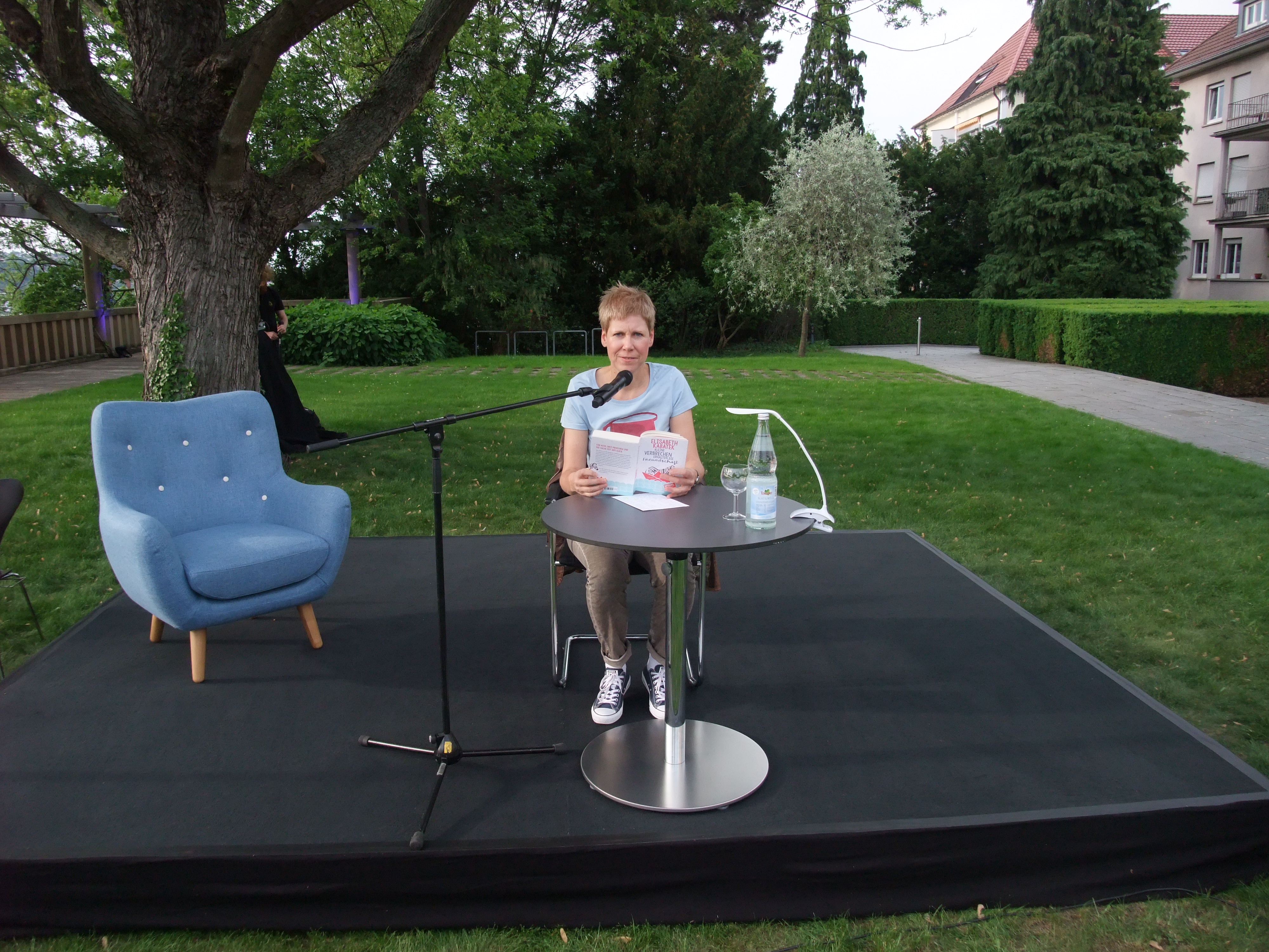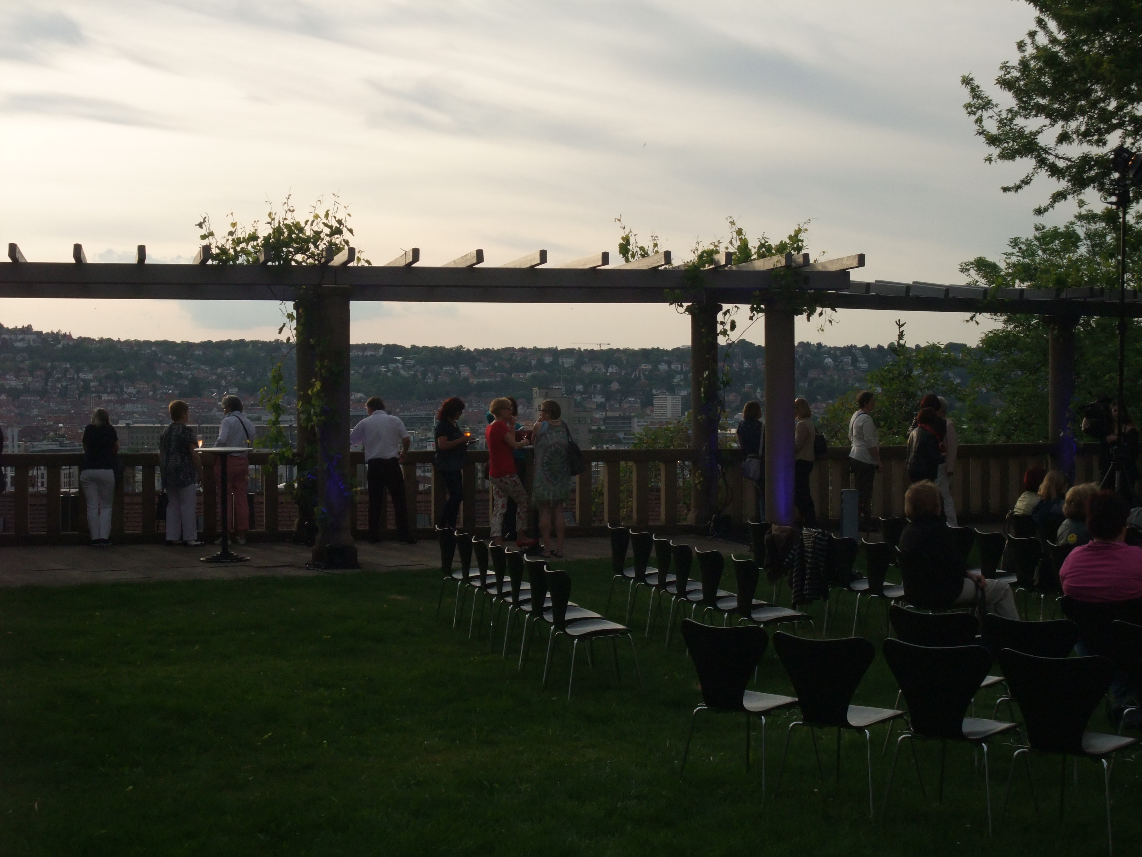 Sehr schön war’s auch gestern Abend bei der Lesung im Haus der Architekten am Bopser in Stuttgart. Die war Teil des Jubiläumsprogramms des Buchhauses Wittwer, das dieses Jahr seinen 150. Geburtstag feiert. Eine Lesung bei gutem Wetter auf der traumhaften Terrasse mit Blick über ganz Stuttgart, das war schon etwas ganz Besonderes.