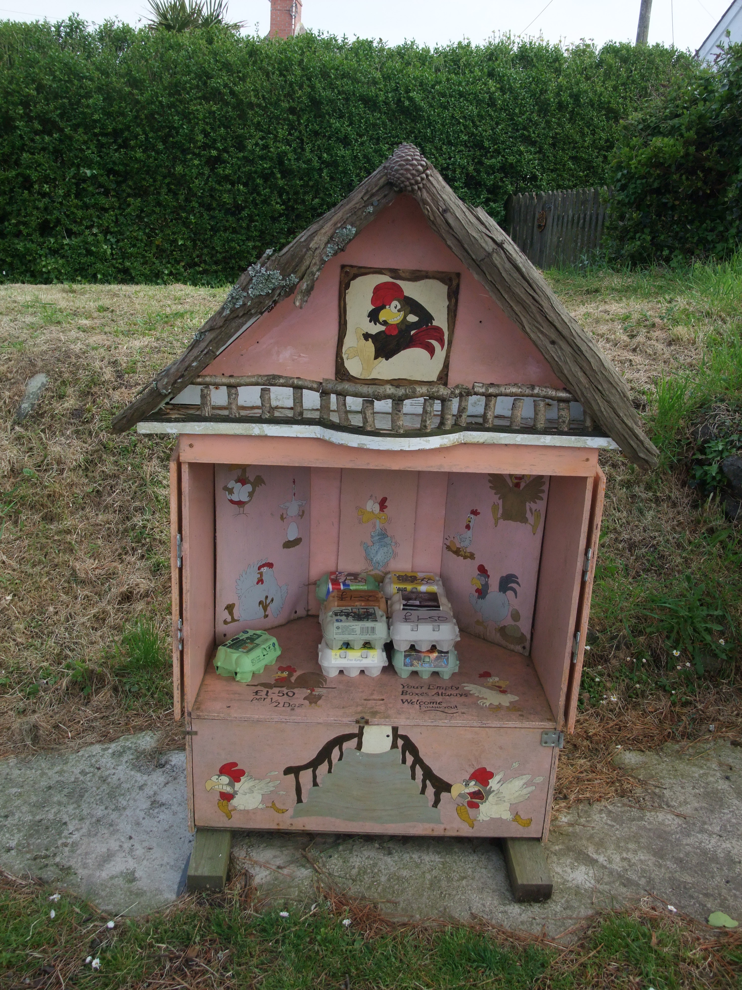 Am einfachsten ist es, an Eier zu kommen. Die gibt es an jeder Ecke und man wirft das Geld in eine sogenannte honesty box, also ein Ehrlichkeitskässchen. Diesen Eierstand in Ruan Minor fand ich besonders hübsch.