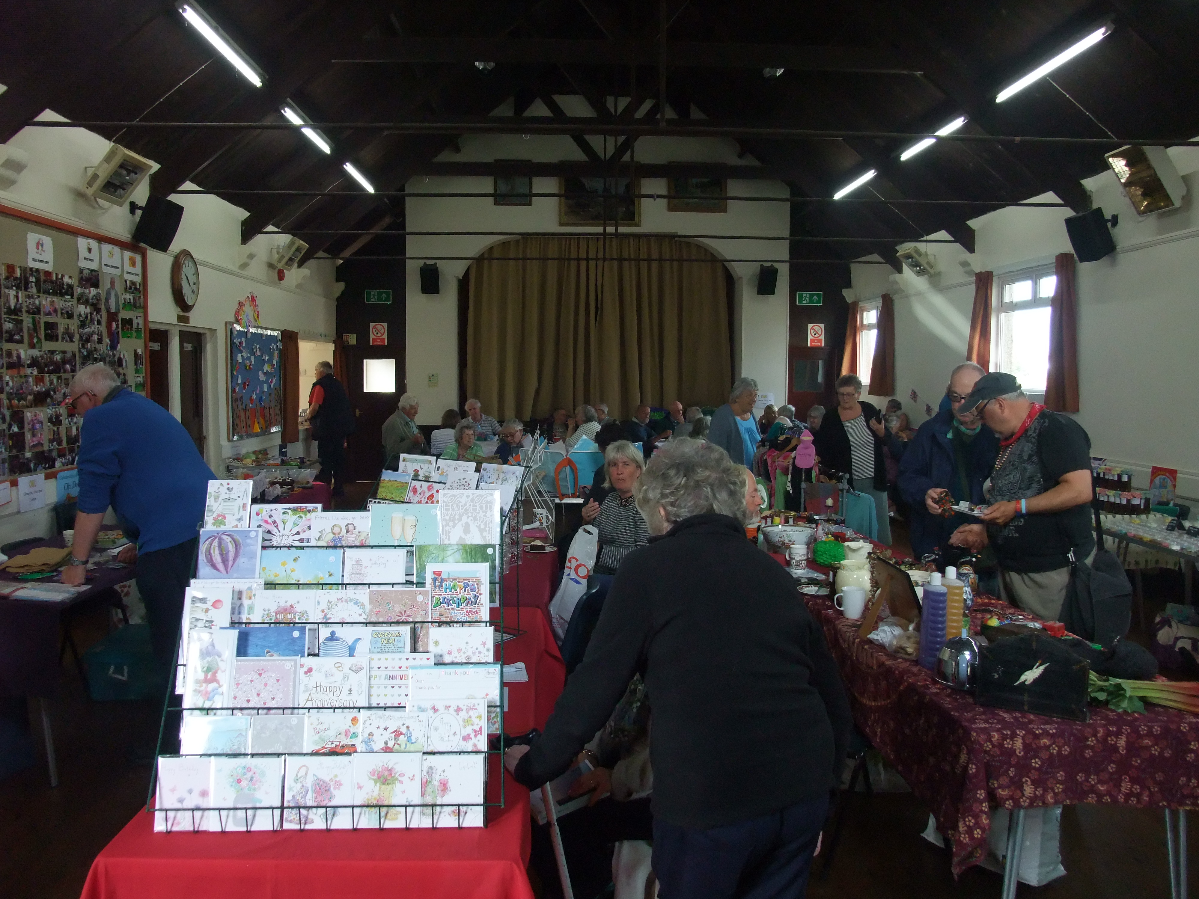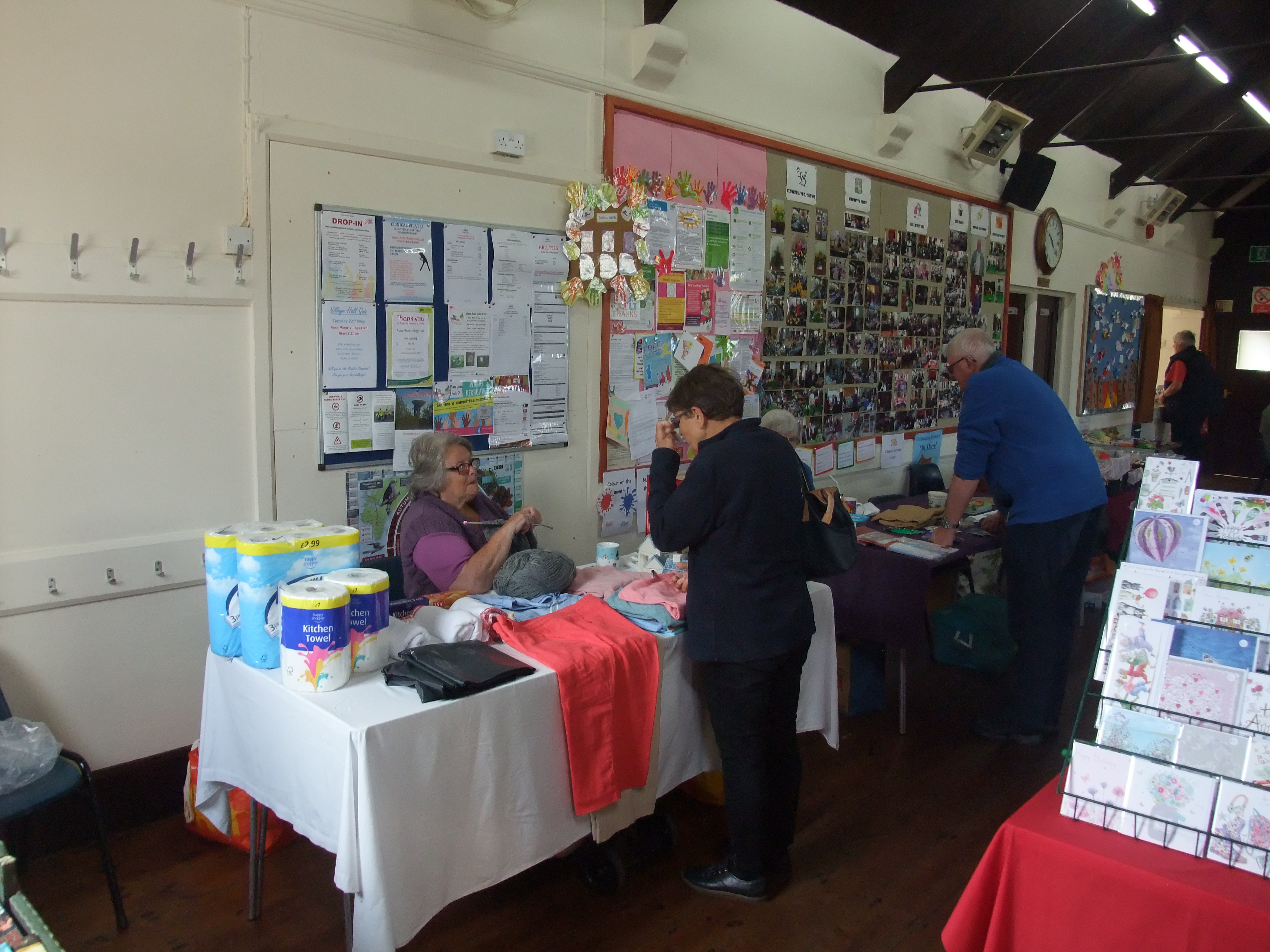 In Cadgwith gibt es ja keinen Laden, aber gestern Morgen war in Ruan Minor Gemeindekaffee. Da gab es dann zum Beispiel Blumen und Pflanzen für den Garten, selbstgebackene Scones für lächerliche 30p, selbstgemachte Marmeladen und Chutneys. Eine Frau saß mit ihrem Strichzeugs da. Das Publikum war zu neunzig Prozent jenseits der achtzig, aber alle waren sehr freundlich. Die Fotos sind nicht so großartig, aber ich wollte die old dears ja nicht erschrecken.
