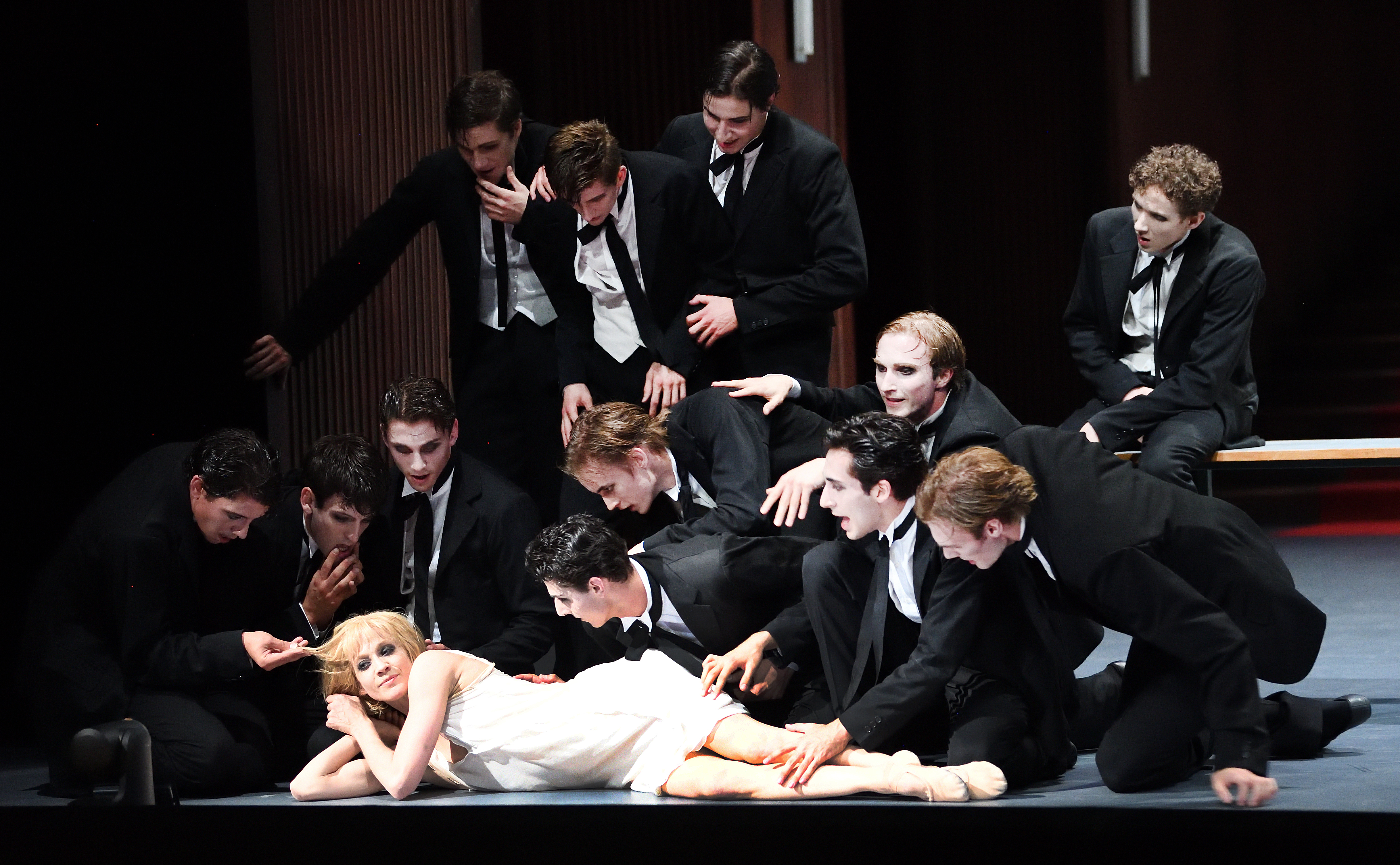 Ich habe Lulu damals mit Katja Wünsche gesehen und freue mich nun auf Alicia Amatriain in der Hauptrolle. Neben mir sitzen Maggie Foyer von Dance Europe und David Mead, Ballettkritiker des Londoner Online-Magazins Seeing Dance. „I love Christian’s work!“, schwärmt Maggie. Sie fängt an, mir von der Londoner Ballettszene zu berichten und von den Ängsten, dass der Brexit die Kulturlandschaft zerstört, aber nun geht das Licht aus und das Ballett beginnt. Es ist ein Ballett, das viele Momente hat, die schwer auszuhalten sind, vor allem, wenn man selber weiblichen Geschlechts ist. Lulu wird herumgeschubst, betatscht und missbraucht, ein Opfer der Männer, manchmal vieler Männer gleichzeitig, sie erscheint hilflos und ausgeliefert, und andererseits inszeniert sie sich und ihren Körper als sei sie eine Göttin, frivol, obszön und selbstbewusst. Sie treibt diejenigen, die sie lieben, in den Wahnsinn, ohne dabei allzu sichtbare Reue zu empfinden.