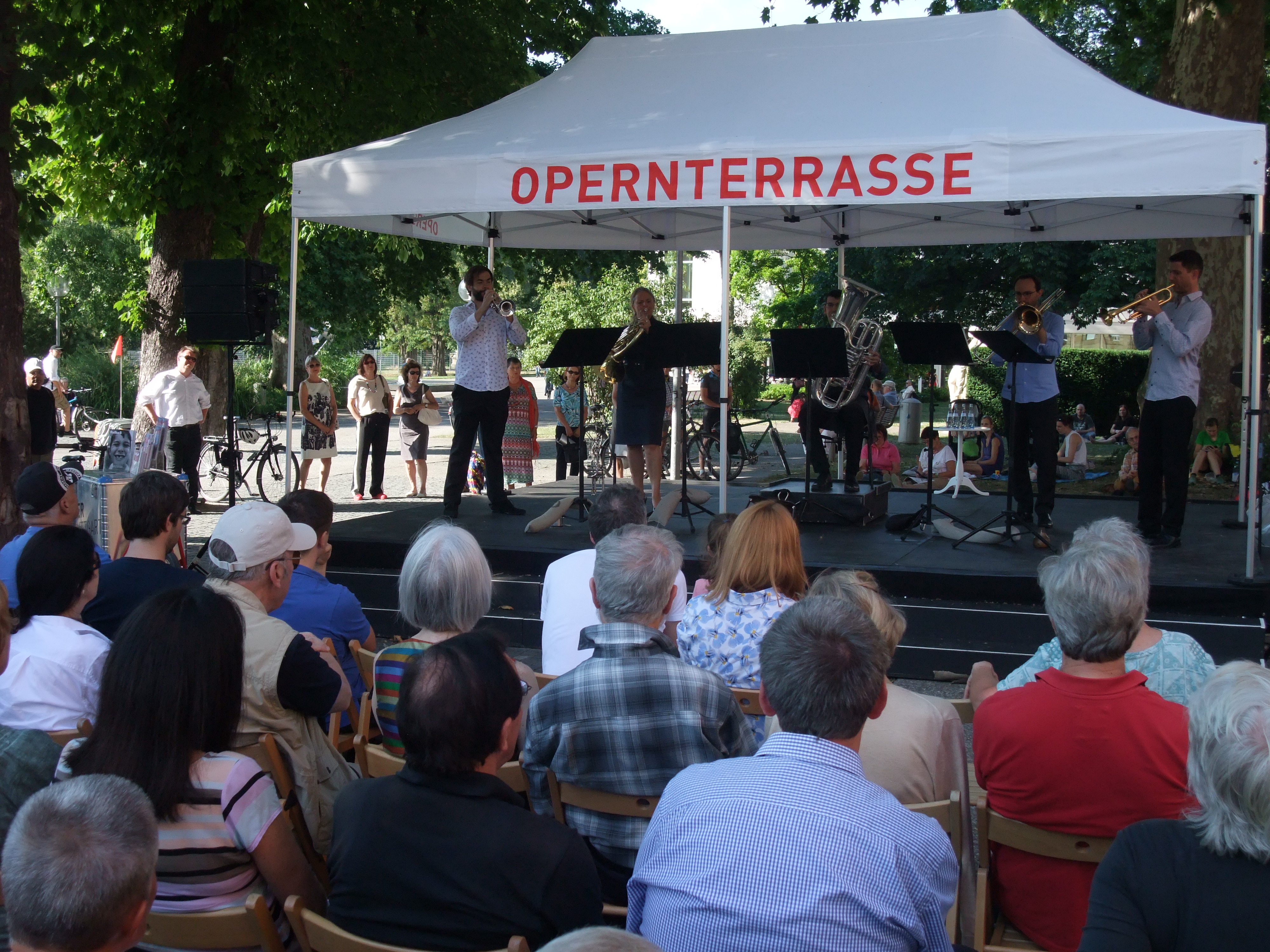 Wer kurz vor sechs am Opernhaus vorbei Richtung Schauspielhaus schlendert, erlebt eine zauberhafte Überraschung. Da sitzen fünf Bläser auf einem Podest und spielen, dass es eine Wonne ist, und davor sitzen ganz viele Zuhörerinnen und Zuhörer und lauschen andächtig, an diesem wunderbaren Sommerabend. Am Tag zuvor hat Reid Anderson die gute Zusammenarbeit mit der Oper gelobt. Es endet ja nicht nur seine Intendanz, sondern auch die von Opernchef Jossi Wieler, der sich mit einer Opernterrasse vor dem Opernhaus verabschiedet. Genügend Publikum gibt es für beides, und nach der Ballettvorstellung wird sich das Ballettpublikum mit dem Opernpublikum im Park vermischen, denn beide Vorstellungen enden nahezu zeitgleich. Was für ein Glück, in einer Stadt zu leben, die so viel Kultur hat, und so viel Publikum, das sich daran freut – glückliches, glückliches Stuttgart, wo man nicht sagen muss, „In dieser Stadt ist kein Platz für uns beide, Cowboy!“ Schön wäre, wenn diese Stadt jetzt mal langsam in die Pötte kommen und eine Interimsspielstätte finden würde…