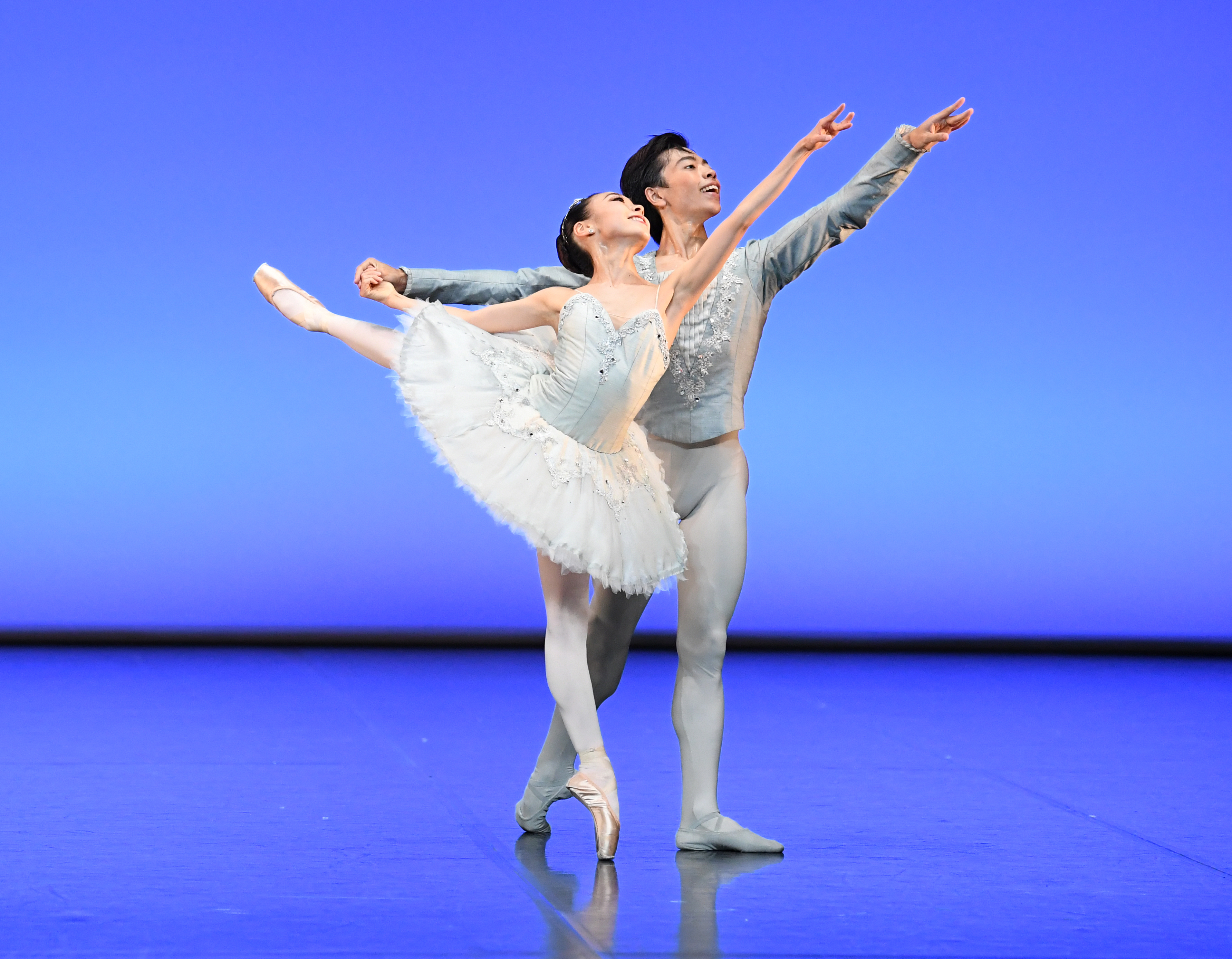 Nun aber weiter im Programm, und jetzt gibt es gleich einen Knaller. Aina Oki und Motomi Kiyota tanzen Sylvia Pas de deux von George Balanchine, und die beiden aus Japan stammenden Tänzer sind einfach atemberaubend! Aina dreht Pirouetten, dass einem schon beim Zuschauen schwindlig wird, und Motomi beeindruckt nicht nur in diesem Stück mit ungeheuer hohen und kraftvollen Sprüngen.