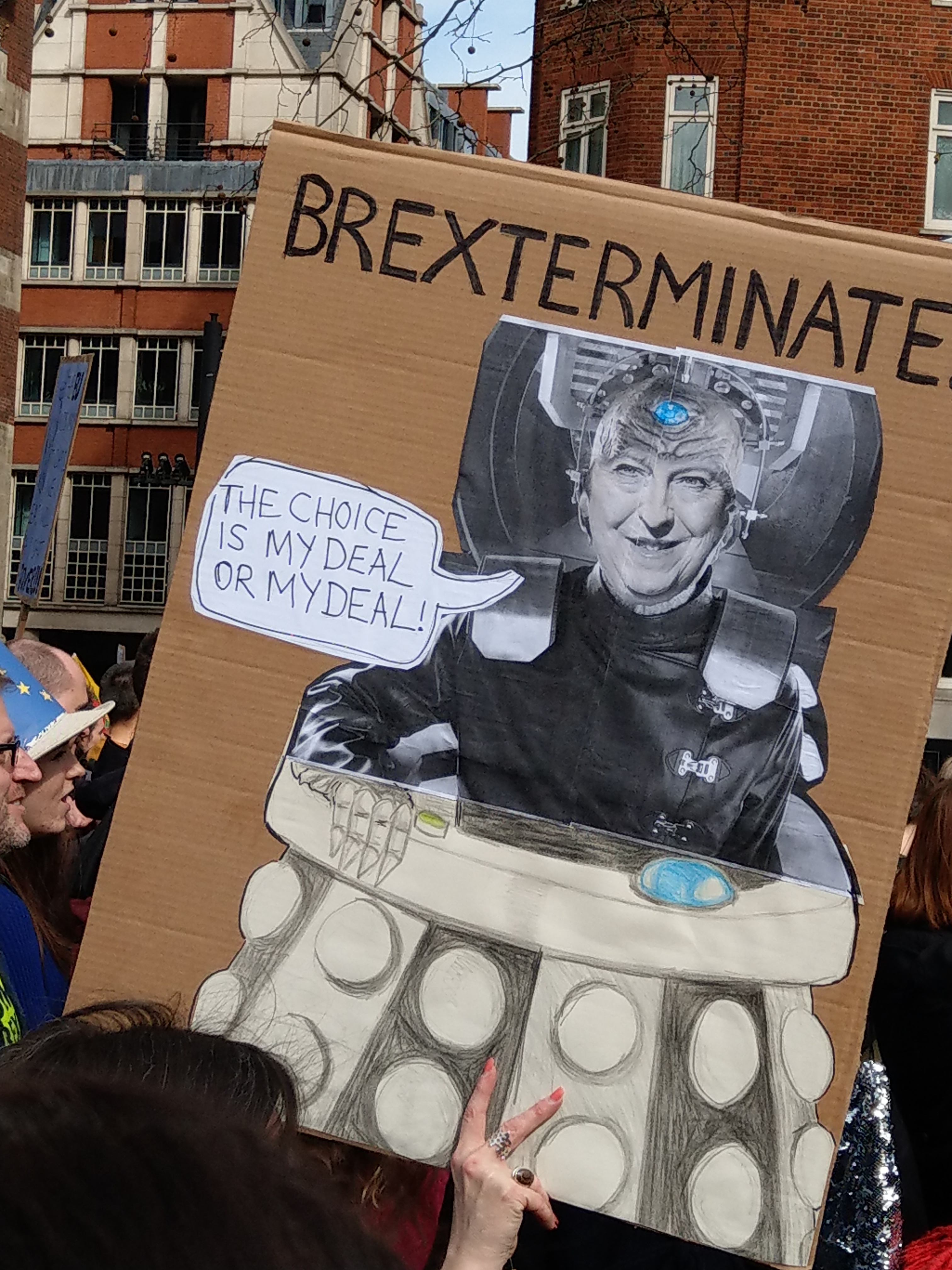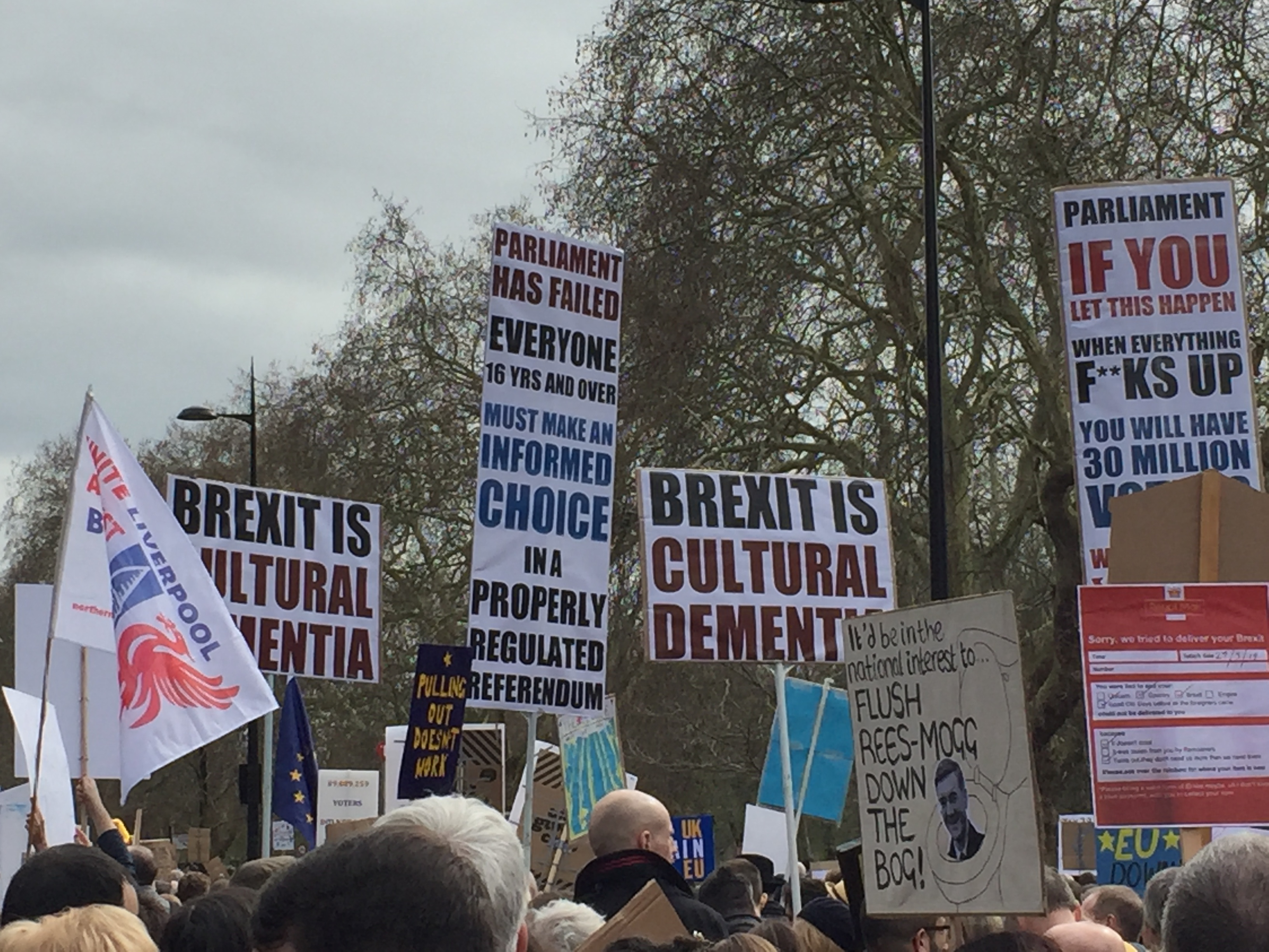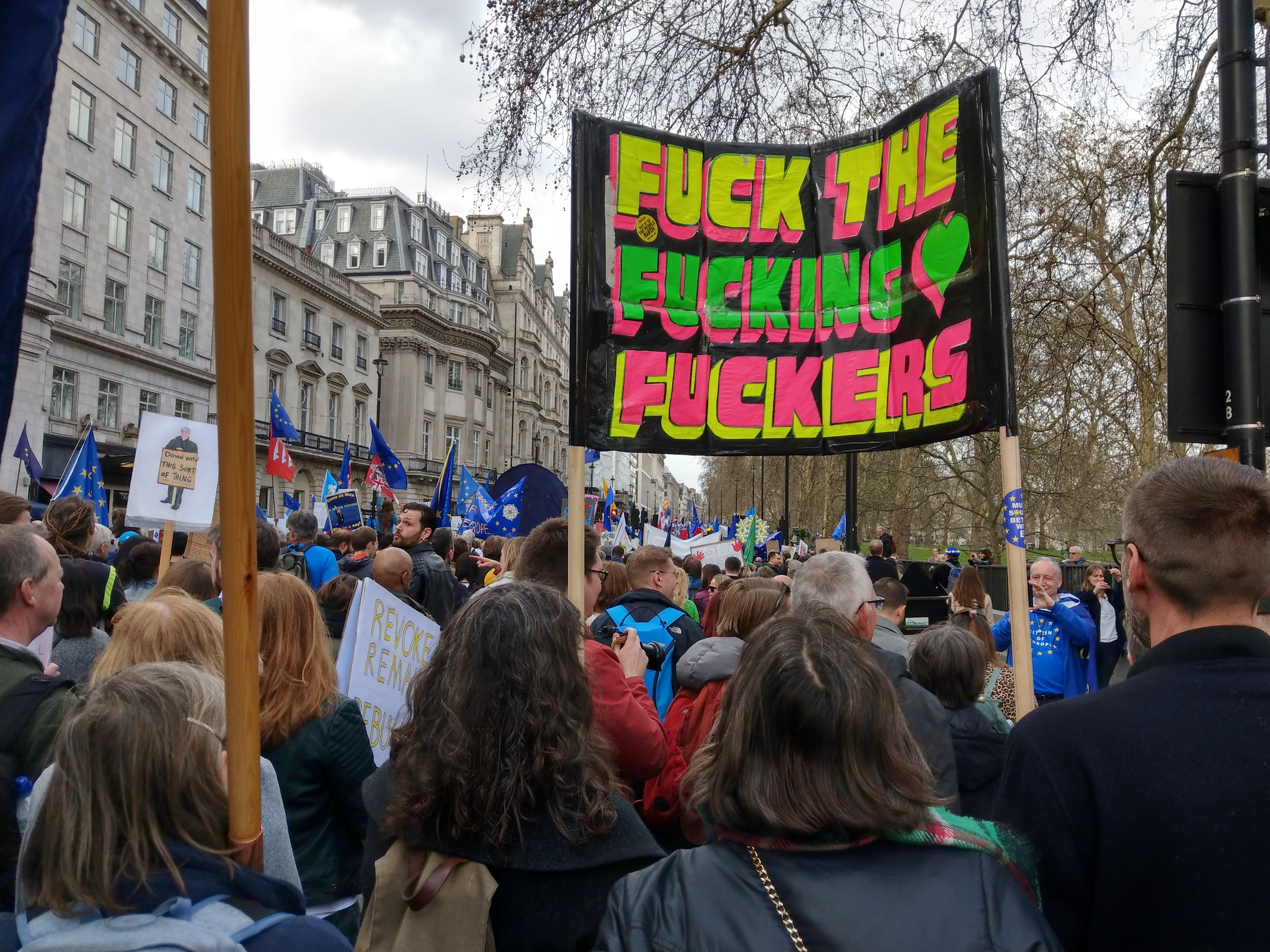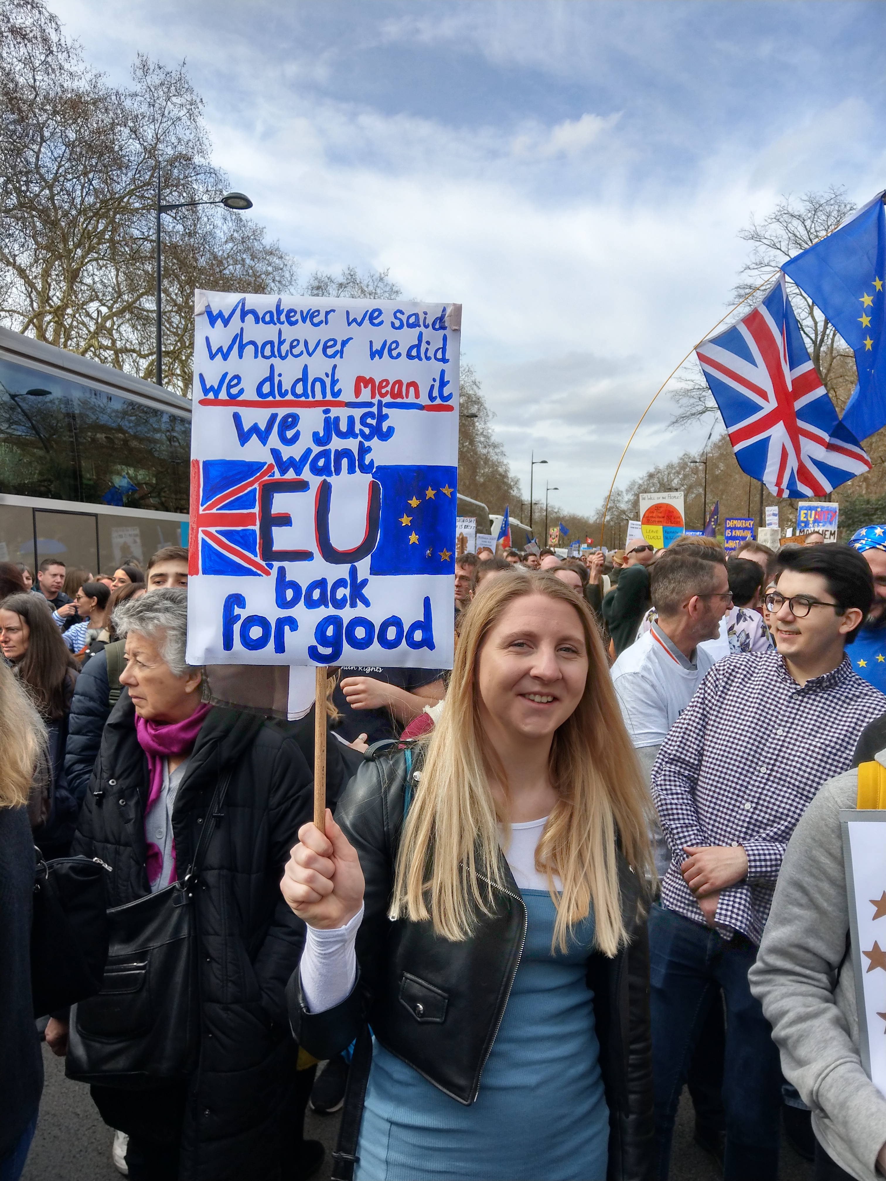 …und nicht nur sie! Am Samstag war ich beim großen „Put it to the people“-march mit über einer Million Teilnehmern in London. Die Demo forderte, eine wie auch immer geartete politische Entscheidung zum Brexit dem Volk zur Abstimmung vorzulegen oder ein zweites Referendum zu ermöglichen.