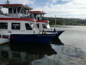 Nach den offiziellen Feierlichkeiten geht es inoffiziell und sehr vergnüglich weiter, nämlich auf dem Brünner Stausee auf einem Schiff mit dem schönen Namen Stuttgart. Auf der Fahrt dahin sehen wir schon ein wenig von dieser wunderschönen Stadt (die gerne mit Wien verglichen wird) und ihren Palästen, besonders die drei renovierten Jugenstil-Paläste sind eine Freude fürs Auge. Marina erzählt uns außerdem, dass sich noch viele deutsche Worte im Brünner Dialekt erhalten haben, weil bis Anfang des 20. Jahrhunderts Deutsch Amtssprache war. Kleines Beispiel gefällig? „Gsicht“, „Schnupfdichel“!