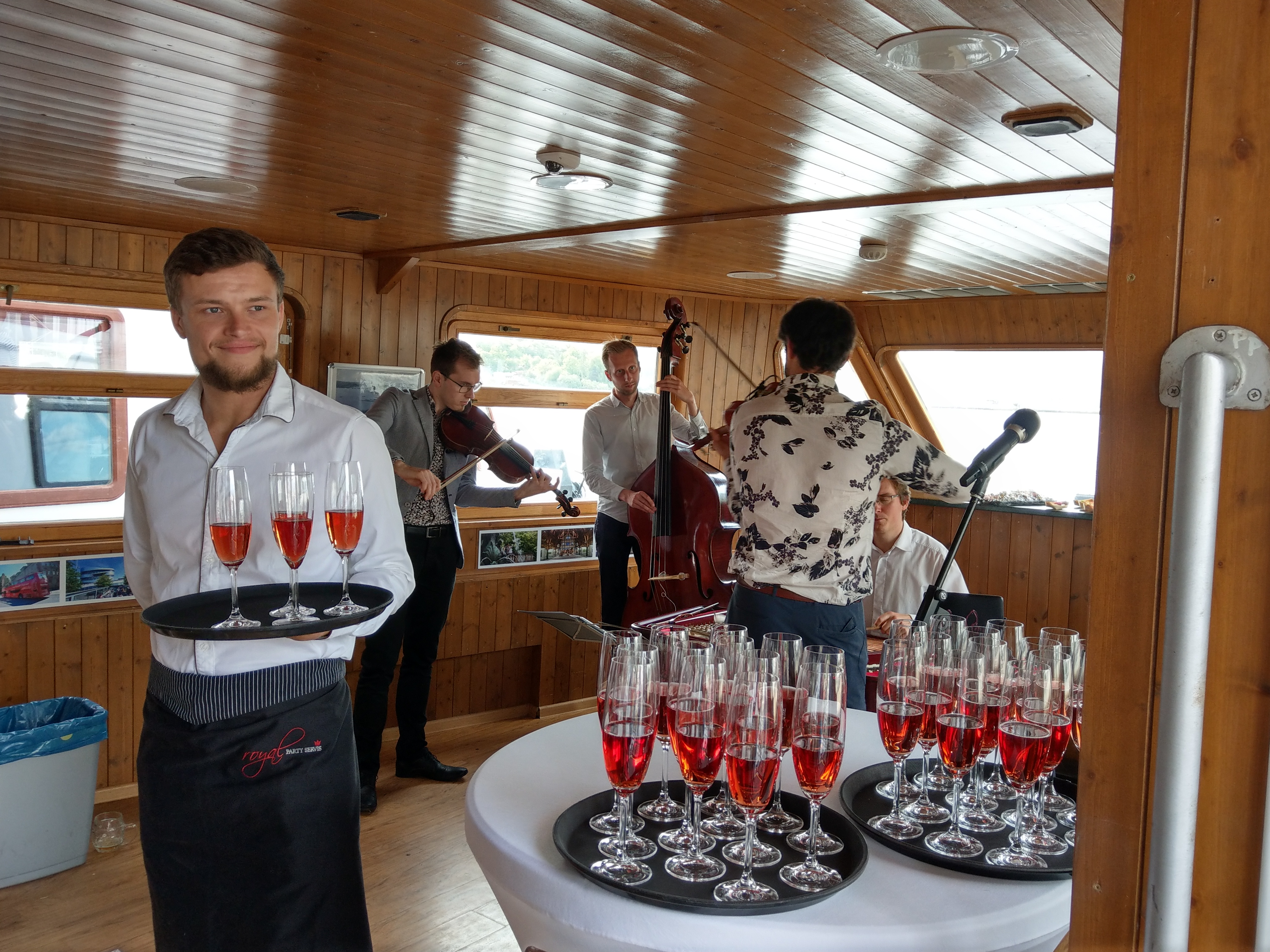 Auf dem Schiff namens Stuttgart, eigentlich einem Doppelschiff, gibt es dann viele musikalische und kulinarische Freuden, unter anderem ein Partnerschafts-Tiramisu!