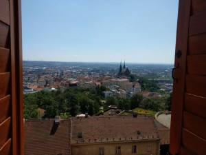 Wenn ich Besuch habe, ist es manchmal ärgerlich, dass in Stuttgart montags alle Museen geschlossen sind. Die Brünner haben für diesen Tag sogar eine eigene Broschüre, „What to do in Brünn on a Monday.“ Die Burg Spielberg/Spilberk zum Beispiel hat auch montags geöffnet. Hoch oben thront sie über der Stadt, wie sich das für eine ordentliche Burg gehört. Nach einem schweißtreibenden Aufstieg zur Burg heißt es nochmal Schweiß vergießen, denn neben dem Turm des Alten Rathauses und den Türmen der Kathedrale St. Peter und Paul ist die Aussichtsplattform im Eckturm der dritte Ort, um Brünn von oben zu betrachten. Das ist so schön, dass ich auf die Kasematten, in Habsburger Zeiten ein Gefängnis für Schwerstverbrecher, gern verzichten kann.
