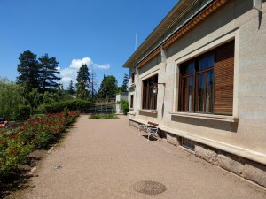 Leider erweist sich der Besuch der Villa Stiassni als etwas unergiebig. Besichtigt werden kann nämlich nur der Park, für das Innere des Hauses müssen es mindestens fünf Personen sein. Die fehlenden vier sind weit und breit nicht zu sehen. Ich kann nicht einmal durchs Fenster spähen, alle Vorhänge und Rolläden sind geschlossen.
