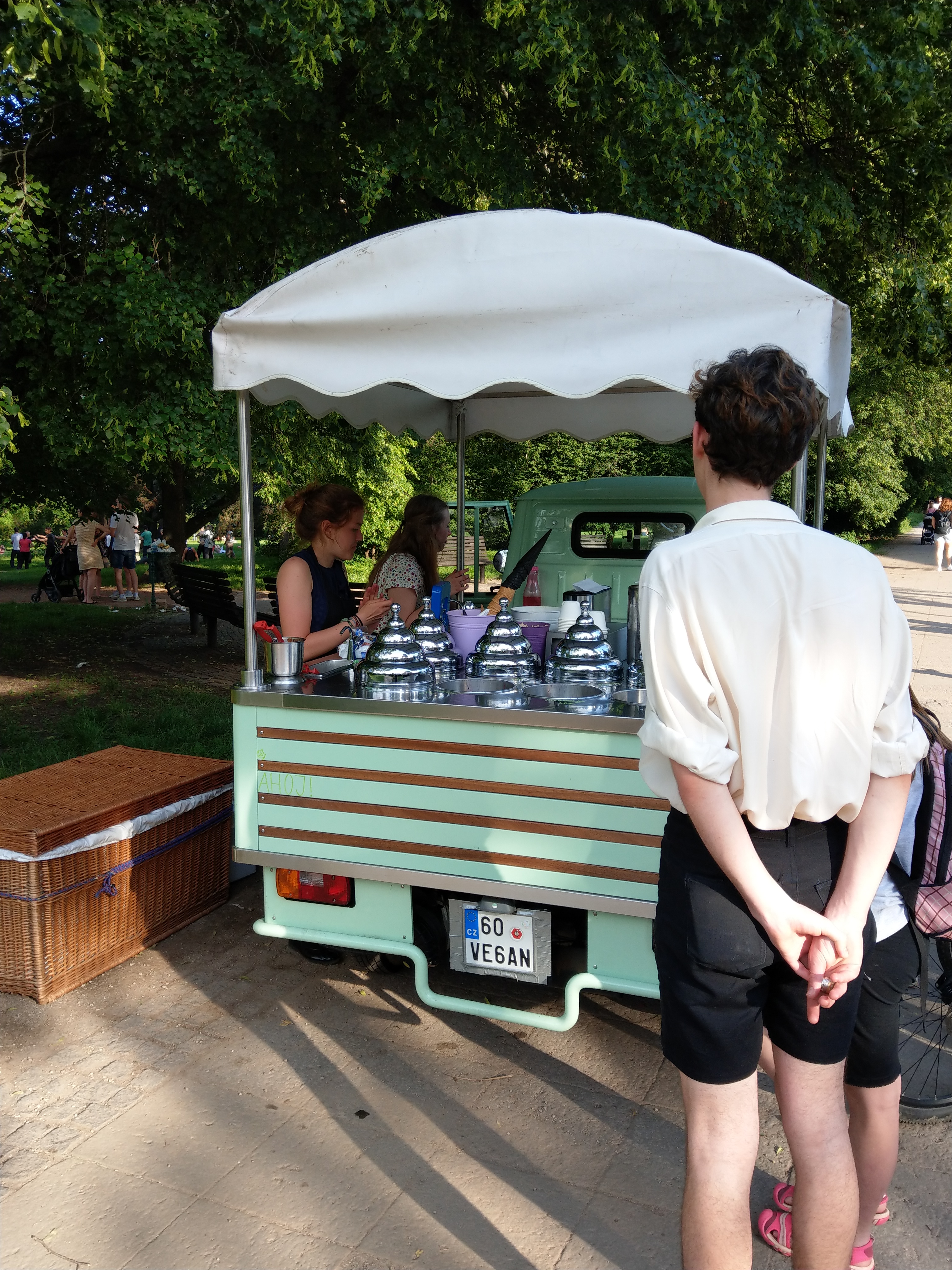 Sehr begeistert scheinen die Tschechen dagegen von veganem Eis zu sein, die türkisfarbenen Wägelchen sind in der ganzen Stadt verteilt und stets umlagert. Das wundert mich, schließlich scheint mir die tschechische Küche extrem fleischlastig zu sein. „Die Älteren wollen ihr Fleisch und ihre Knödel“, sagt die junge Eisverkäuferin, während sie mir ein Holunder-Eis reicht. „Bei den Jungen ändert sich das.“ Man beachte das Nummernschild!