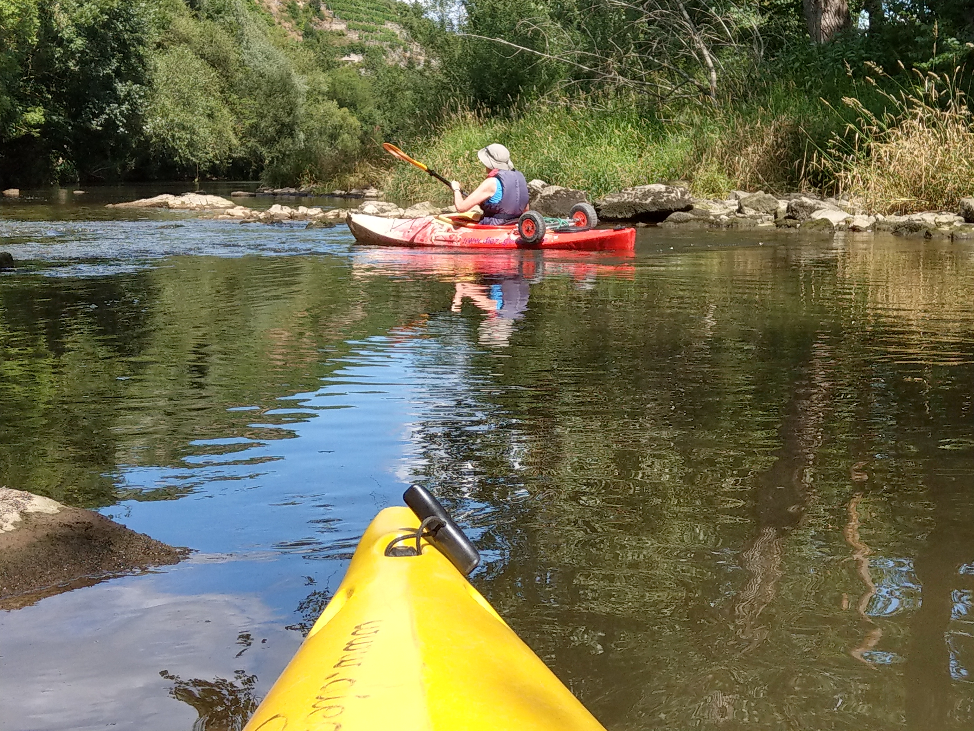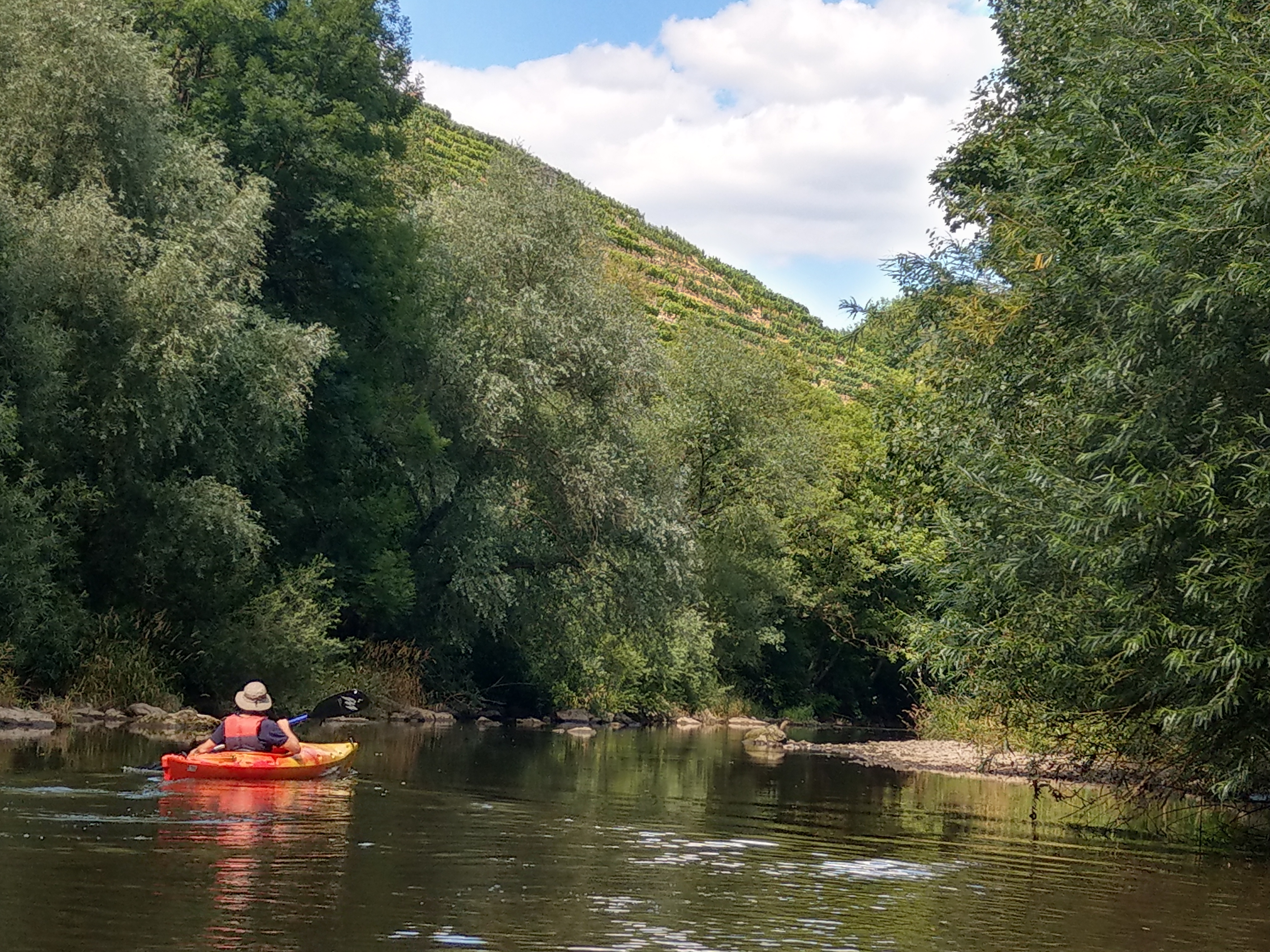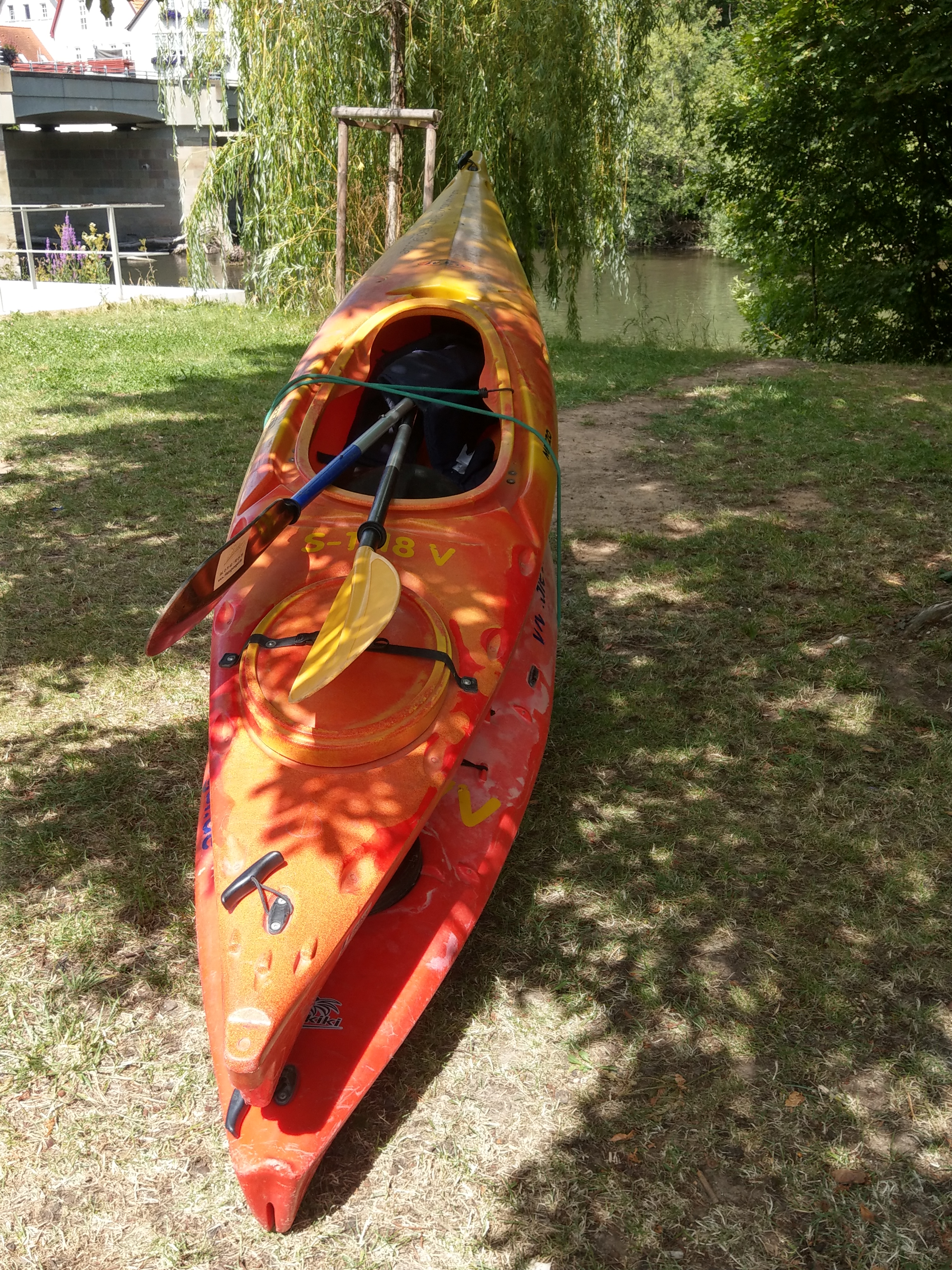 Noch ist Sommer, und wer staycation macht, also Urlaub daheim, noch eine richtig tolle Sommerbeschäftigung sucht und im Großraum Stuttgart/Ludwigsburg wohnt, dem sei eine Kajakfahrt auf der Enz empfohlen! Von Bietigheim geht es erst auf der Enz nach Besigheim. Unterwegs muss man einmal aussteigen und das oder die Kajaks auf ein Wägele laden, das man hinten aufs Kajak schnallt. Das Laden und Schieben erfordert etwas Kraft und Übung und ist nicht der spaßigste Teil an der Tour. Das Paddeln selber ist dagegen einfach grandios. Die Enz ist ein naturnaher, äußerst idyllischer Fluss mit vielen Baumstämmen, die romantisch ins Wasser ragen, und während auf dem Radweg die Hölle los ist, hat man das Wasser (fast) für sich allein, man gleitet entspannt dahin und sieht Reiher, Bussarde und sogar Eisvögel. Allerdings wird die Tour nicht mehr lange möglich sein, weil die Enz wegen der Trockenheit Niedrigwasser hat. Sehr hübsch ist Besigheim, dort heißt es wieder aussteigen und das Kajak durch den halben Ort rollen, aber die Besigheimer scheinen das gewöhnt zu sein, jedenfalls hat niemand komisch geguckt. Praktischerweise kommt man hier an einer Eisdiele vorbei! Nach einer Runde Spaghetti-Eis geht es wieder auf die Enz und wenig später findet man sich plötzlich im Neckar wieder, der deutlich breiter und majestätischer daherfließt als sein kleiner Zufluss, und da fühlt man sich dann wie der Superpaddler. Schicke Motorboote mit sonnenbadenden Bikini-Schönheiten brausen vorbei und vermitteln Mittelmeer-Gefühle. Die Tour endet (je nach Planung) in Kirchheim/Neckar und nach mehreren Stunden Paddeln schmerzen die Arme, aber es macht riesigen Spaß. In Kirchheim gibt man das Boot ab, kann noch im Biergarten einkehren und dann gemütlich zur S-Bahn spazieren. Super-Sonntag, Super-Tour! Kajakfahren ist eigentlich gar nicht schwer (wenn man nicht den Anspruch hat, geradeaus zu fahren), das Ein- und Aussteigen ist dagegen eine ziemlich kippelige Angelegenheit. Die Tour und auch andere Varianten wird von dem Veranstalter „Zugvögel“ angeboten, man bekommt eine Einweisung und Schwimmwesten. Vorbuchen per Internet ist zwingend erforderlich. Mehr unter http://www.diezugvoegel.de. Und hier ein paar Impressionen von Enz und Neckar!