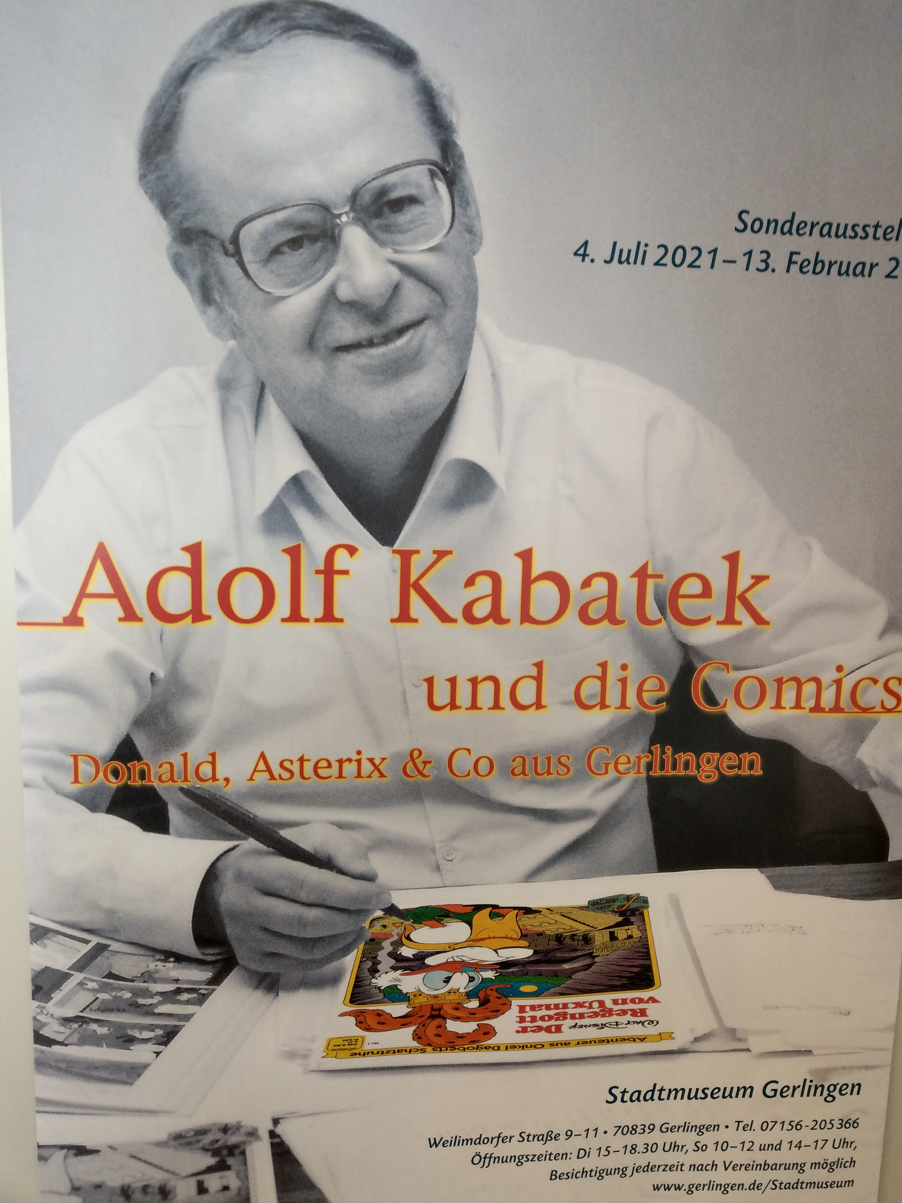 Klein, aber aufschlussreich ist die Ausstellung zum 90. Geburtstag meines Vaters Adolf Kabatek im Stadtmuseum in Gerlingen, die mein Bruder Johannes kuratiert hat. Sie erzählt die Geschichte eines Mannes, der im Krieg seine Heimat verlor, auf Umwegen in Gerlingen landete und im Ehapa-Verlag Comics wie Asterix, Lucky Luke und Micky Maus erfolgreich machte. Und übernächste Woche gibt’s Kabatek in Gerlingen im Doppelpack, denn am Mittwoch, 13. Oktober lese ich in der Stadtbücherei in Gerlingen!