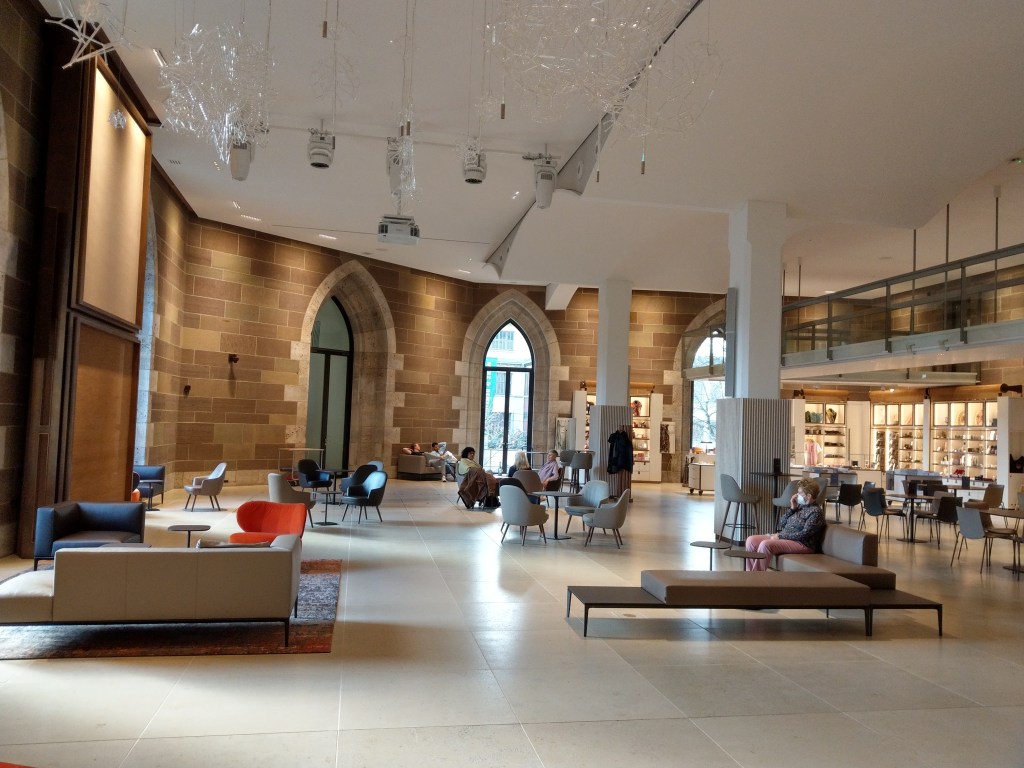 And now to something completely different! Vor ein paar Monaten hat das Landesmuseum Stuttgart seine umgebaute Dürnitz eingeweiht, den früheren Speisesaal der Alten Ritterburg (okay, es ist nicht mehr die Alte Burg, da sie zweimal abgebrannt ist, aber es hat mal so ausgesehen). Daraus ist jetzt ein umwerfendes Café geworden, ein Open Space im besten Sinne! Man kann dort arbeiten (freies WLAN), Kaffee trinken nach dem Museumsbesuch oder sich ohne Museumsbesuch verabreden. Eingerichtet wie eine coole Lounge, sitzt man dort einfach wunderschön. Hingehen und testen! Es gibt viel Platz und Abstand. Es lohnt allein wegen der Klos… hier ein paar Impressionen!